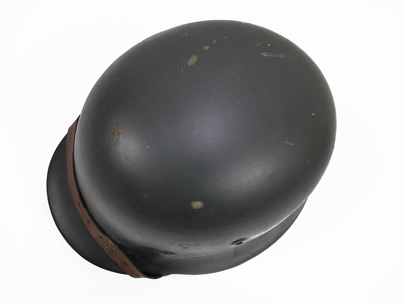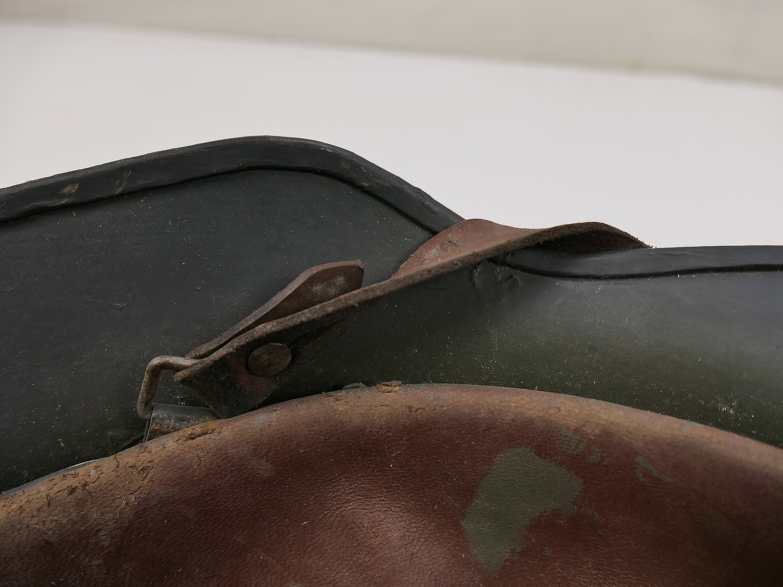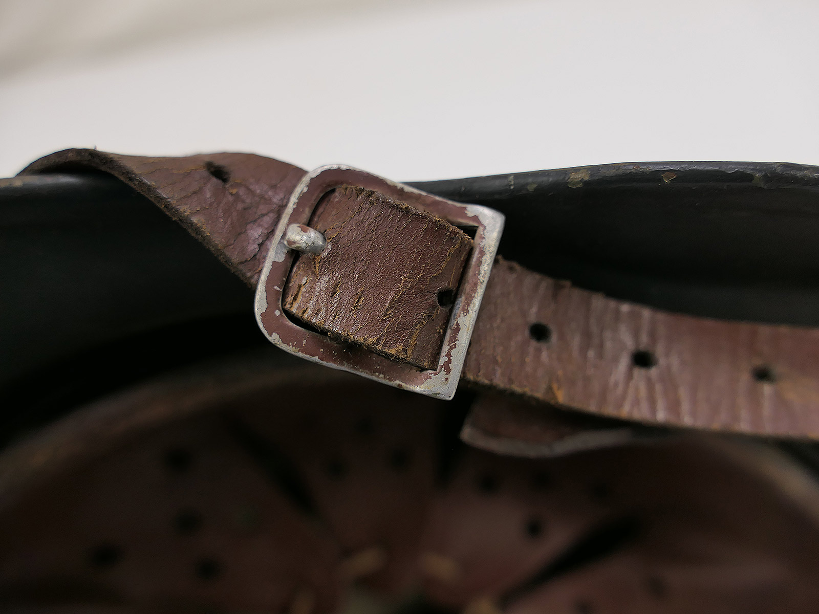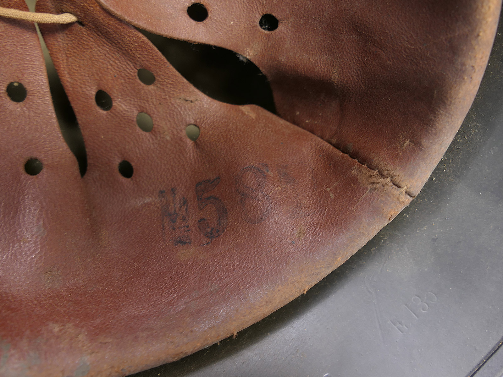 Mit Innenfutter (ältere Sammleranfertigung in Museumsqualität) und Kinnriemen (ebenso) vervollständigt.