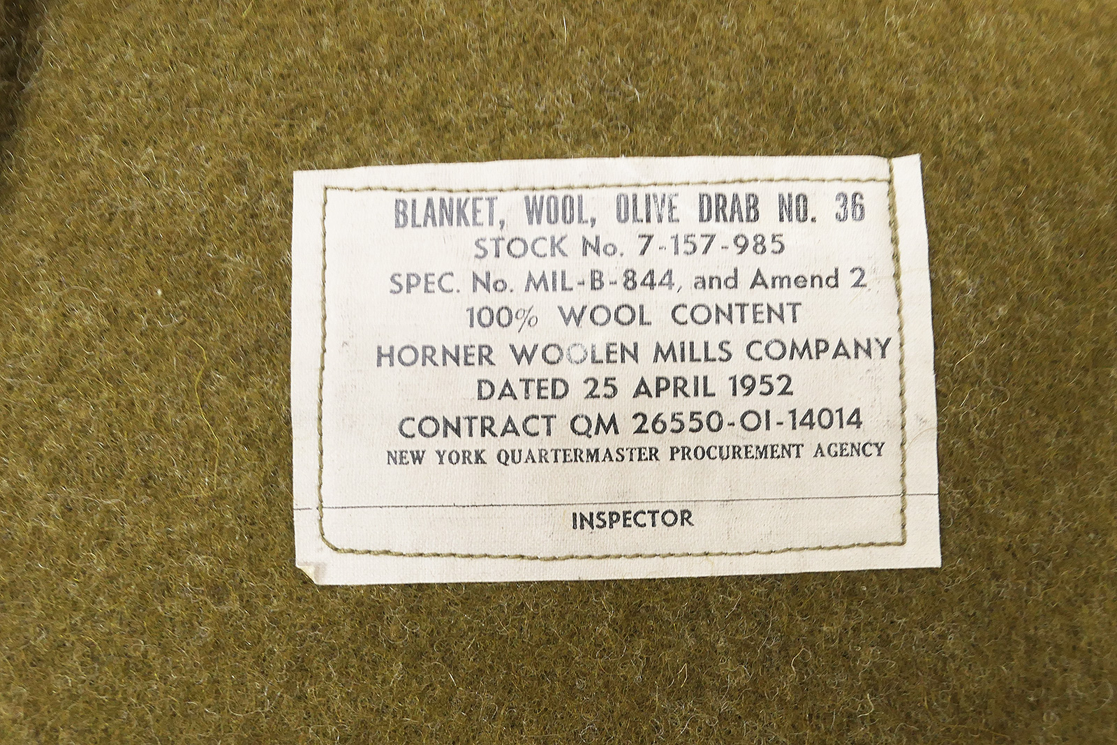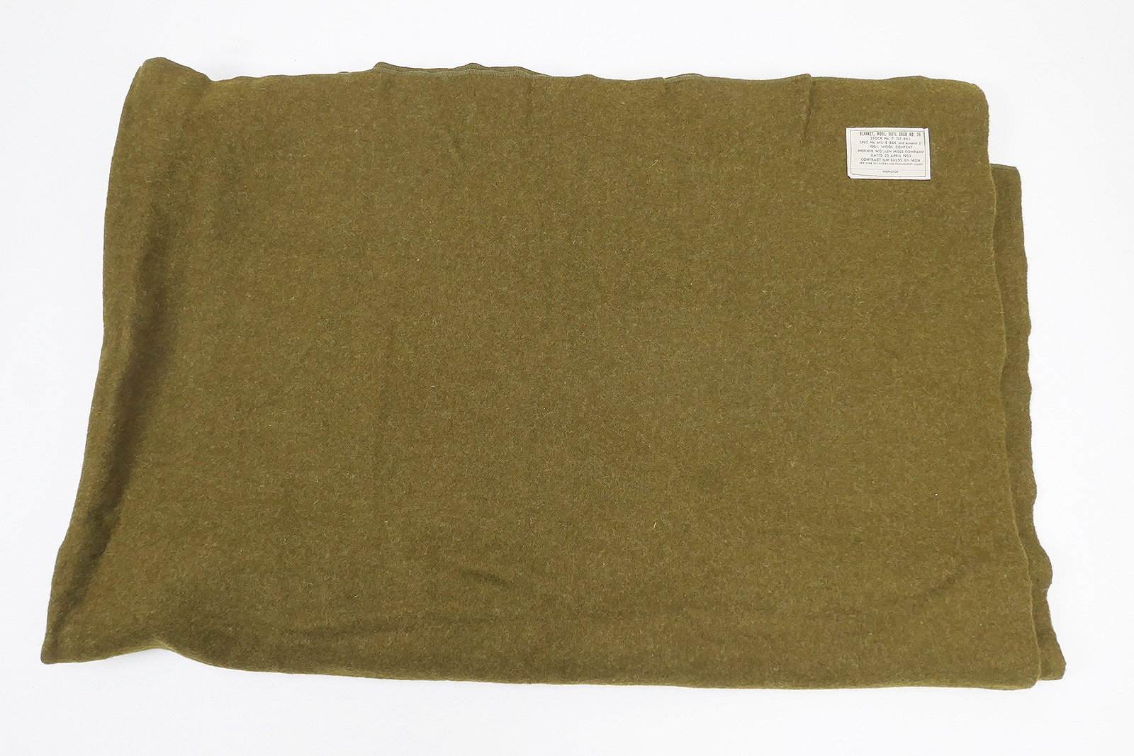 original US Army Wool virgin Blanket OD, gebrauchter Zustand ohne größere Beschädigungen (siehe Bilder), datiert 1952.