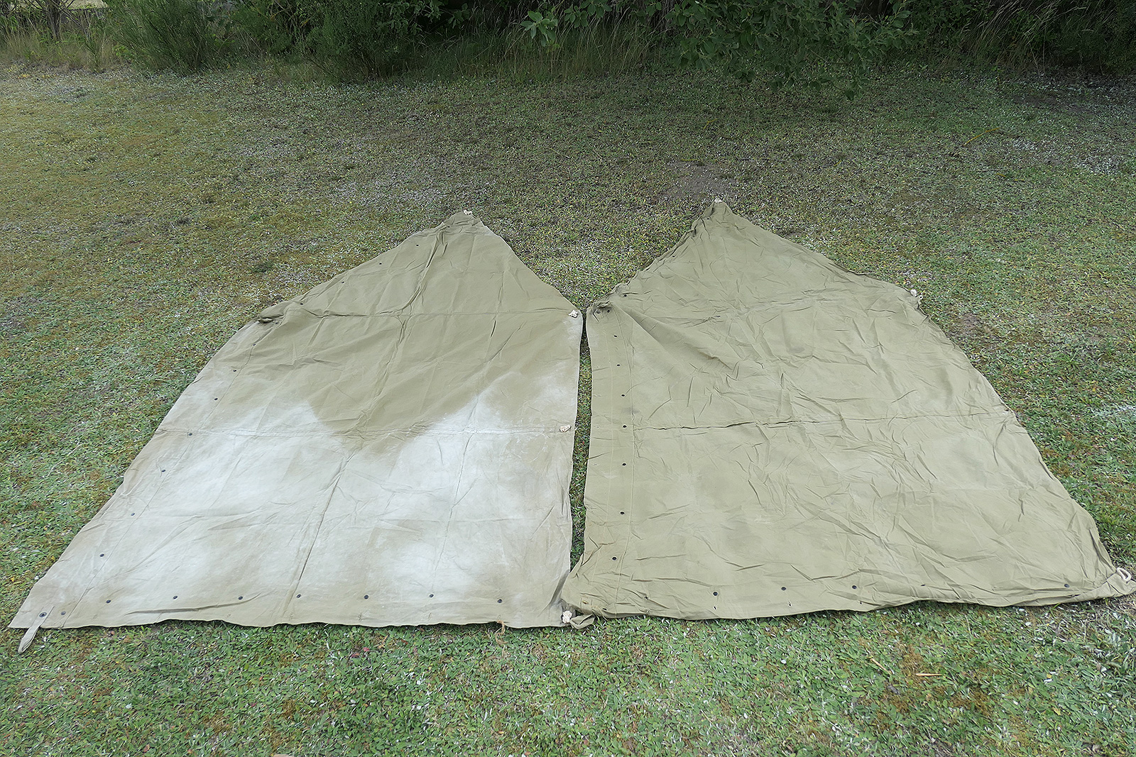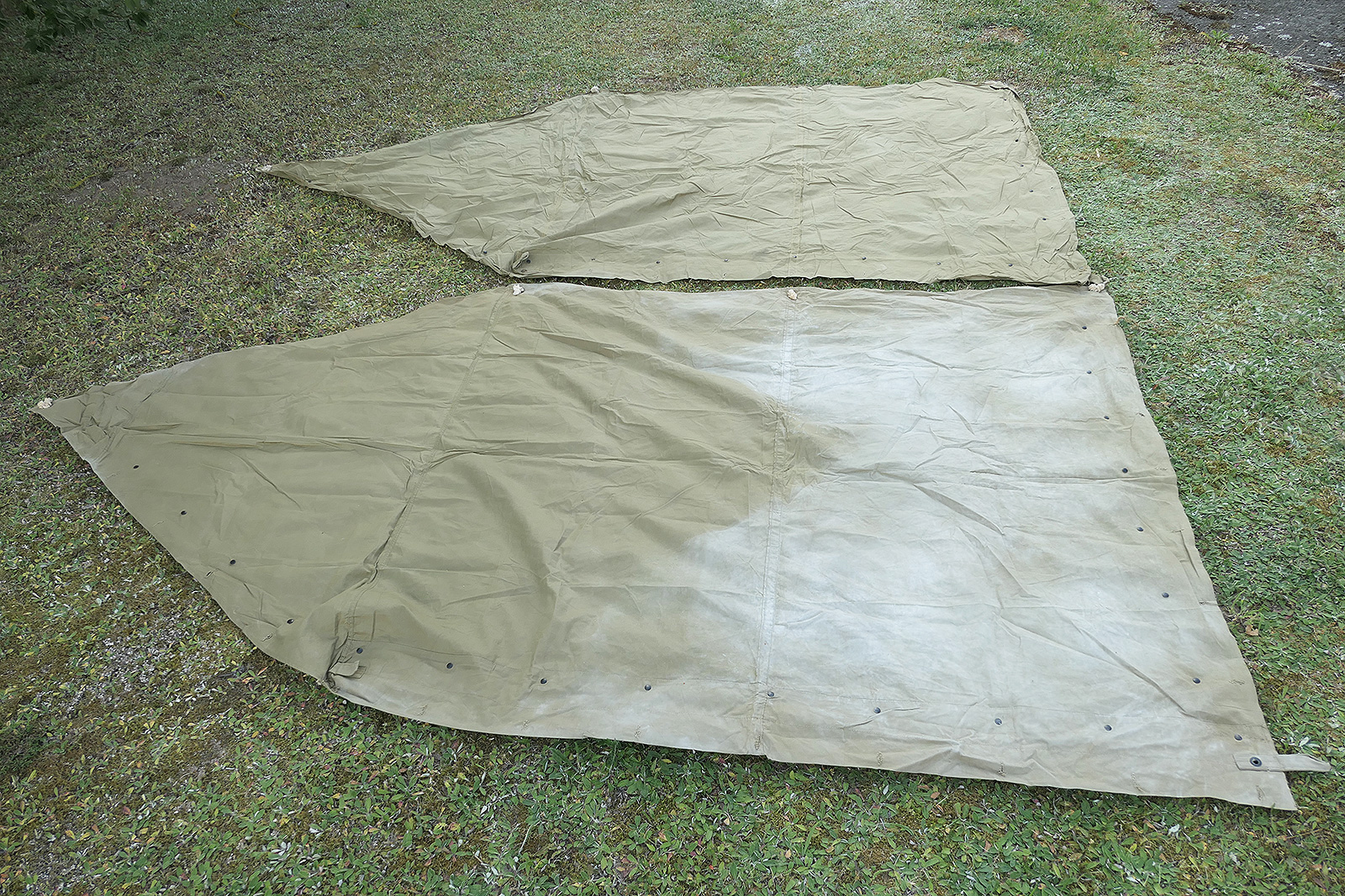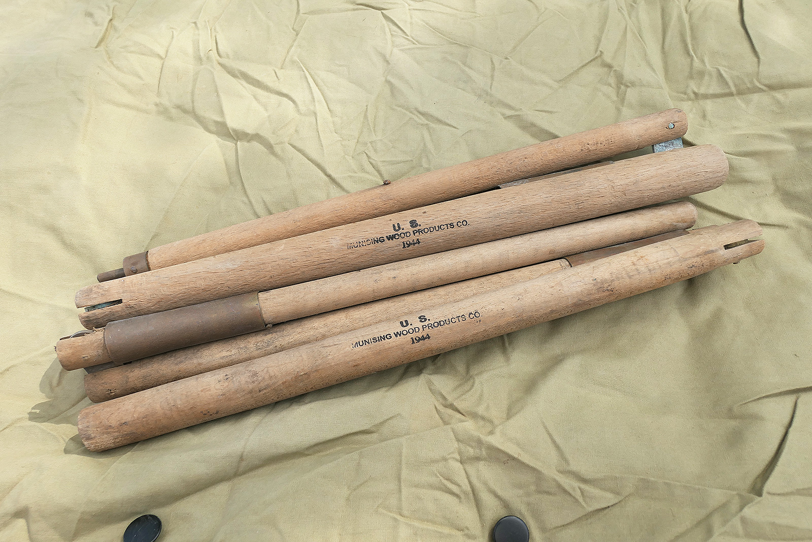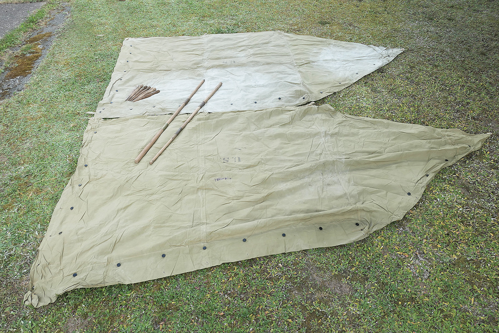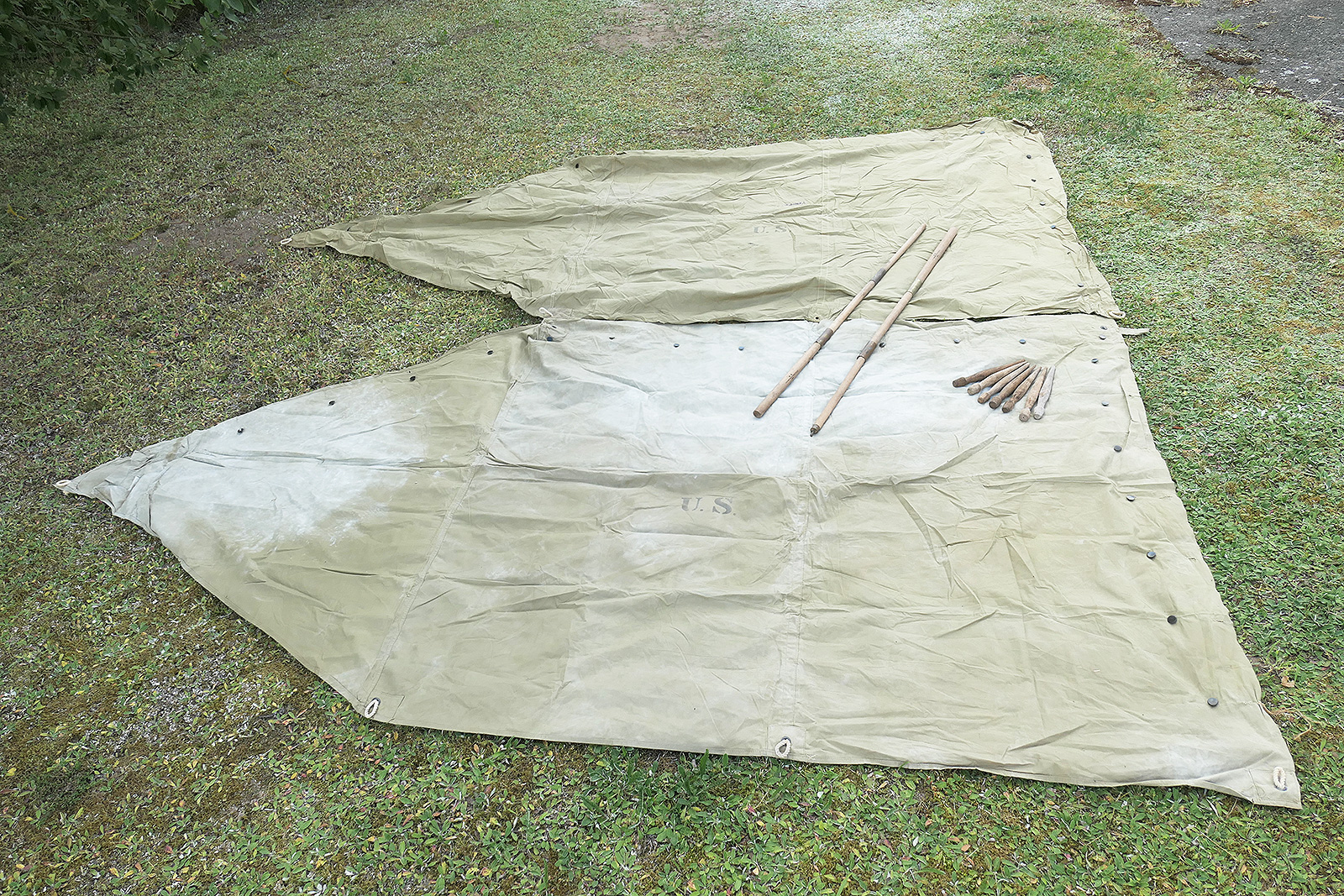 Beide Planen mit "U.S." gestempelt, ohne Hersteller/Datierung, Zeltstangen 1944 gestempelt.