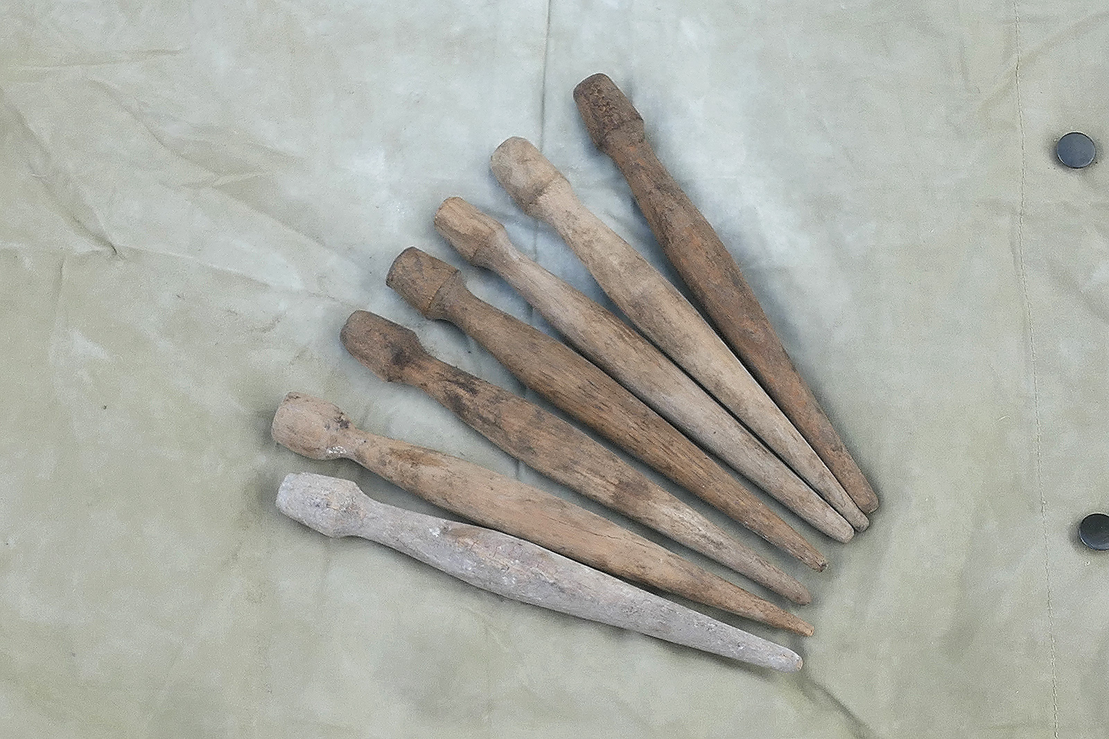 Komplettes US Zweimannzelt mit 2 Stangen und 7 Holzpflöcken.