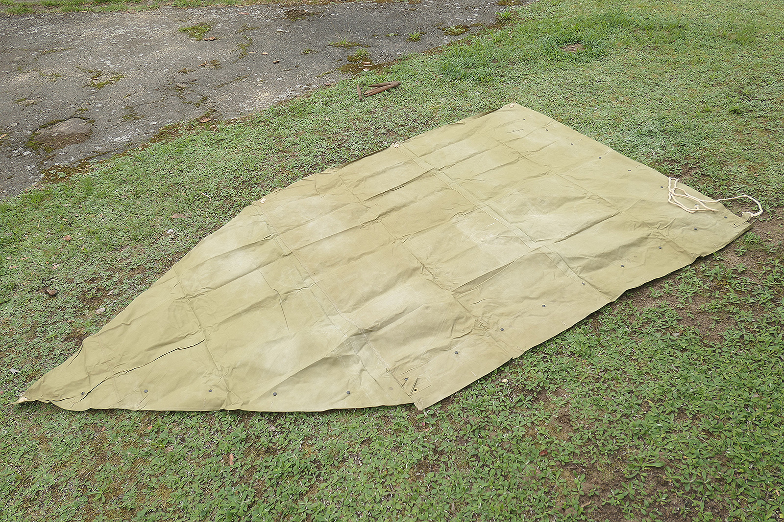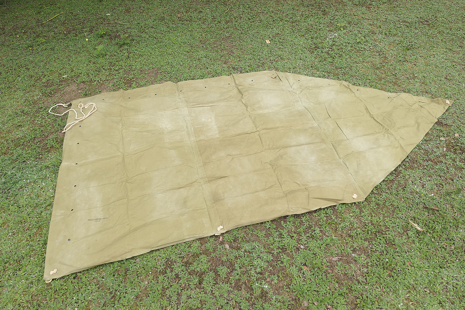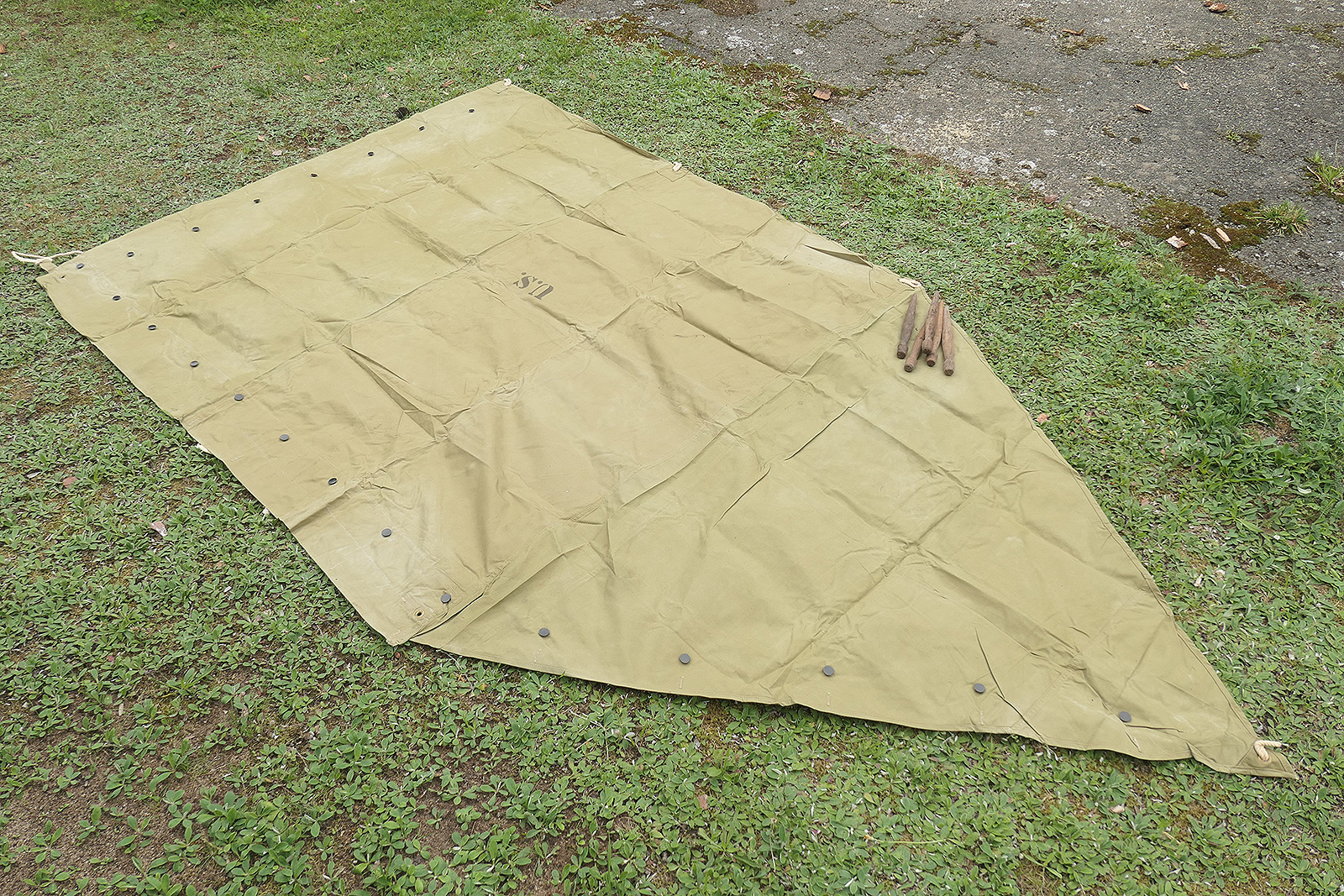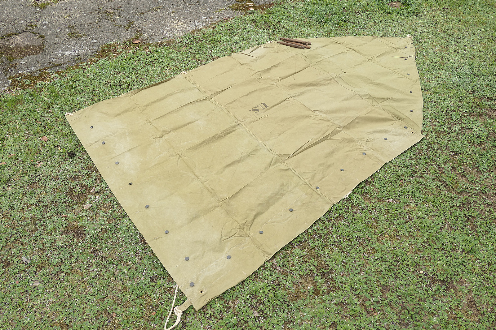 #1 US Zeltbahn shelter Zeltplane tent half 1942 + 5x Holzpflöcke