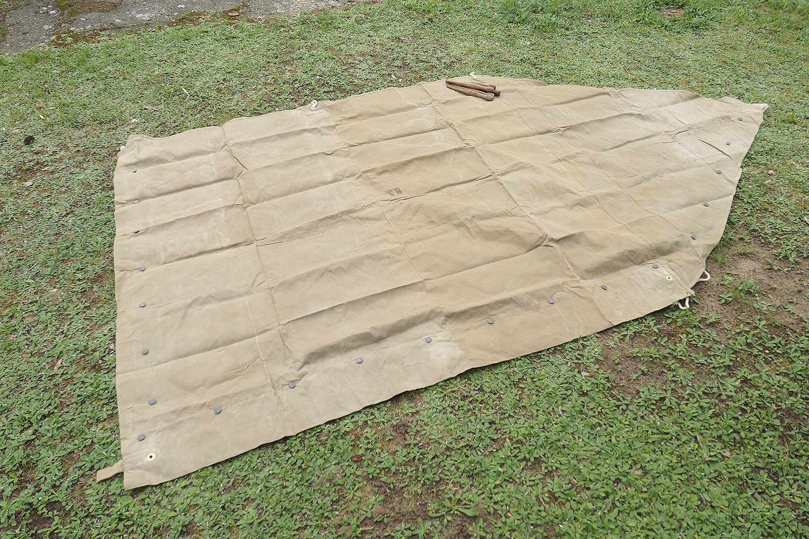 #2 US Zeltbahn shelter Zeltplane tent half 1942 + 5x Holzpflöcke
