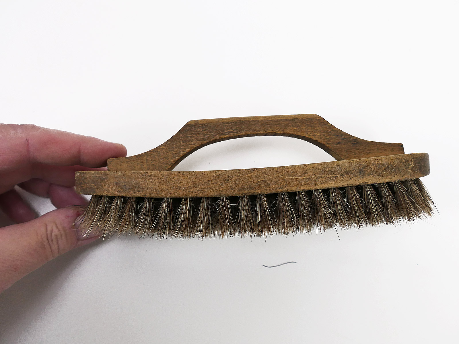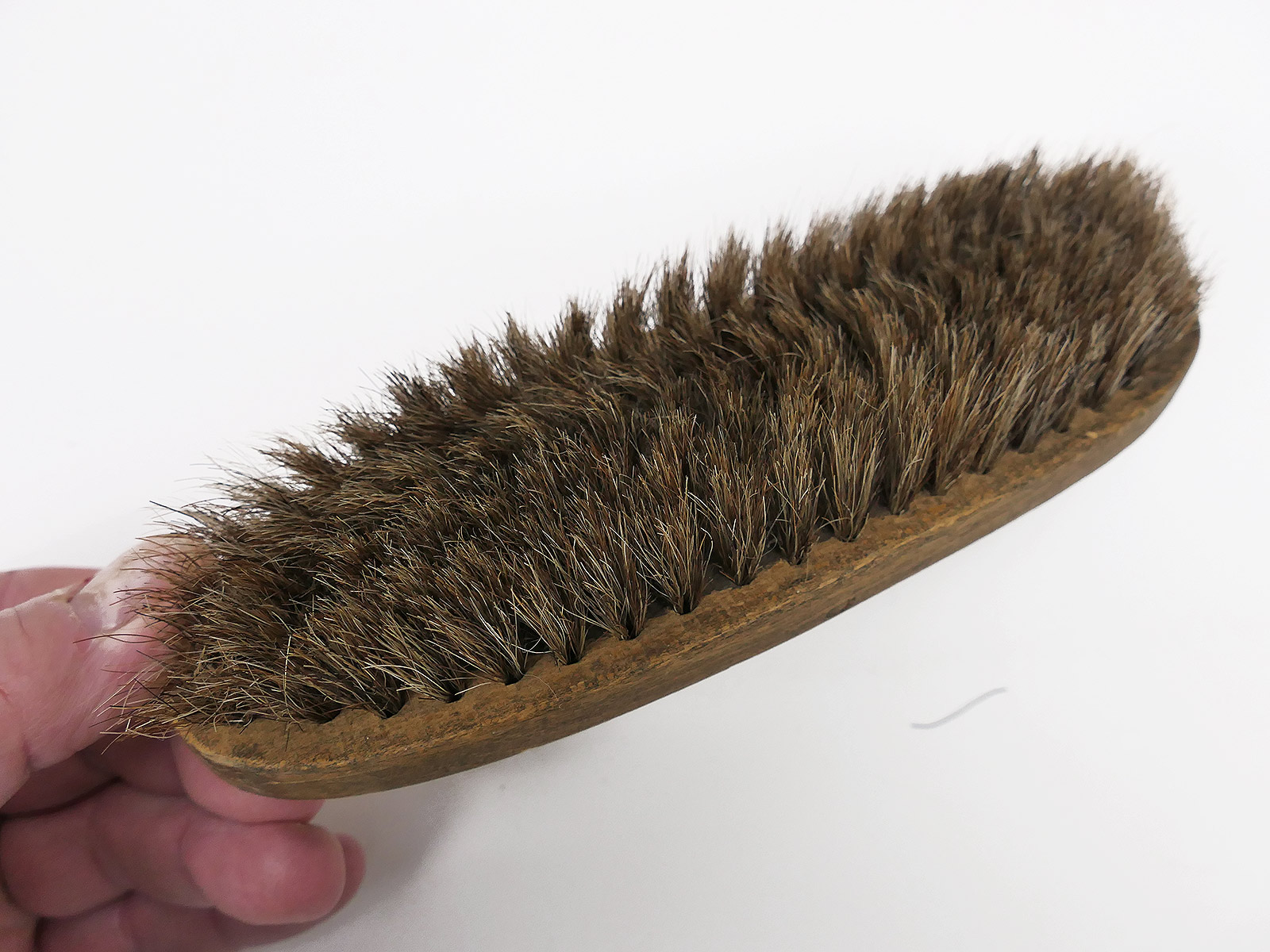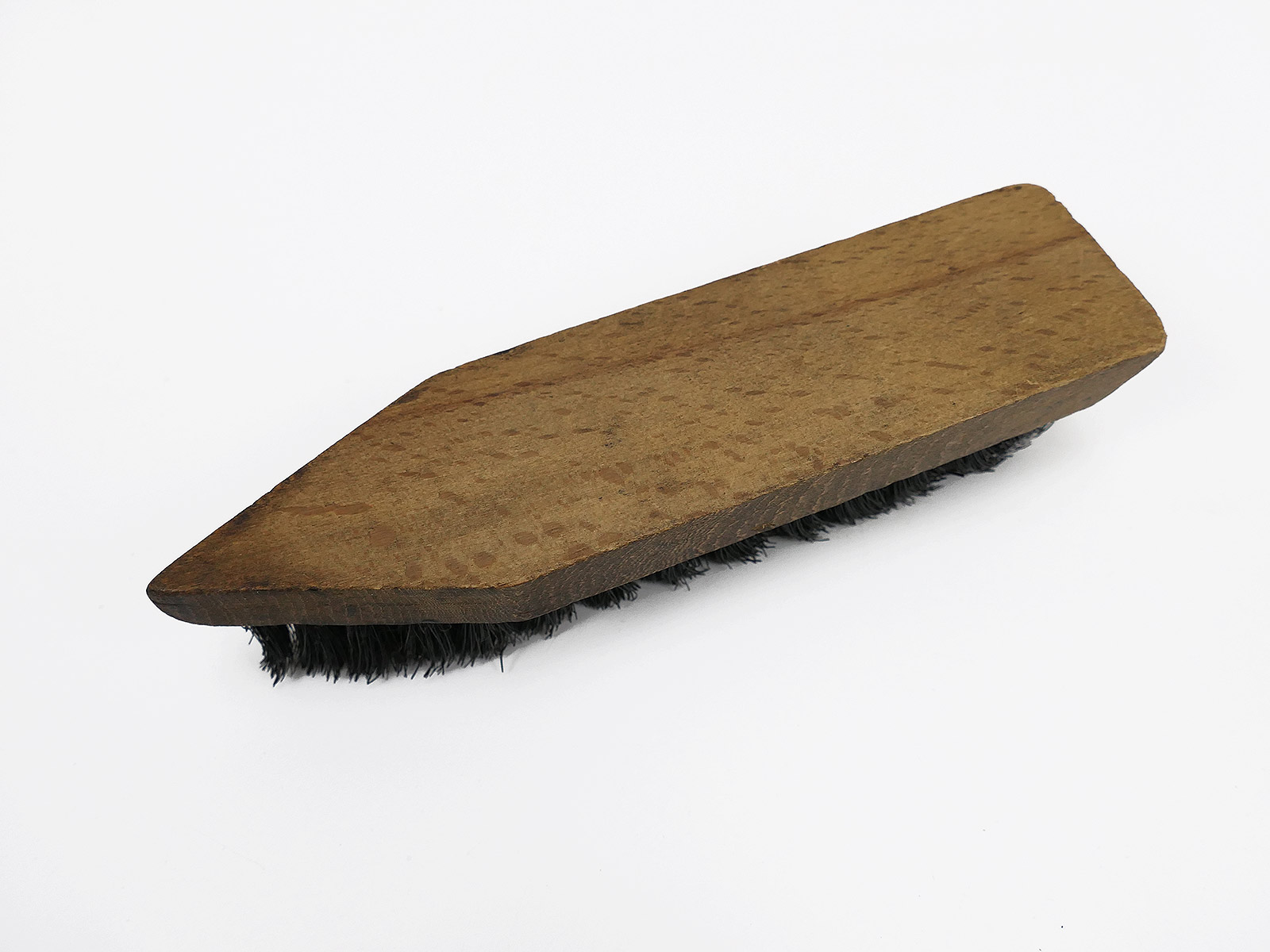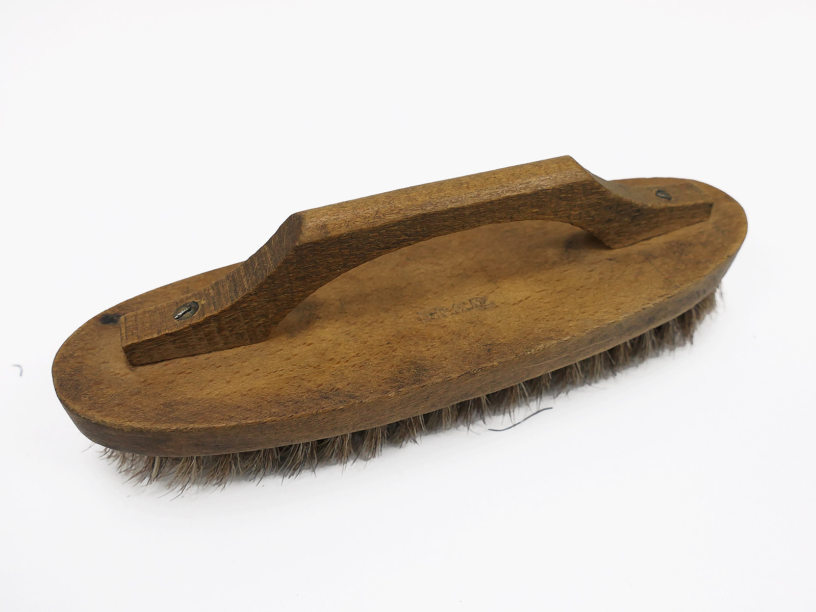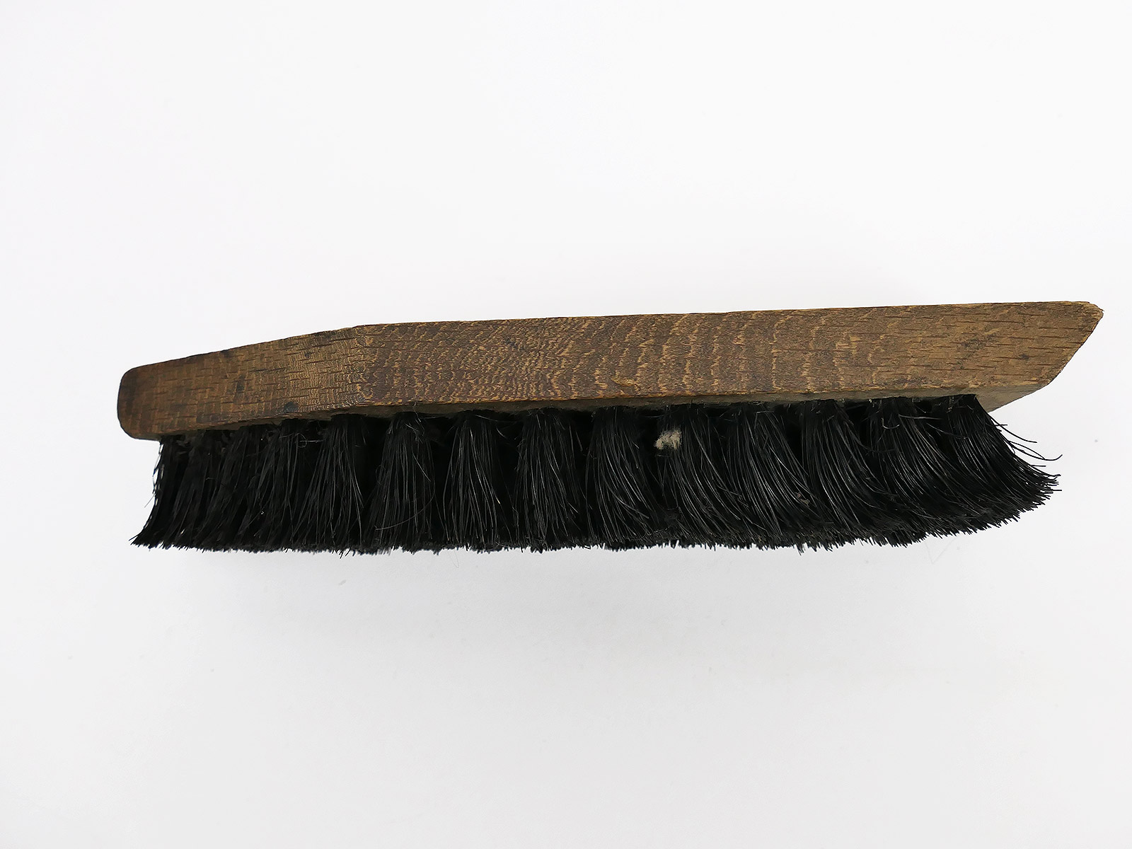 Schuhputzzeug mit original alten Bürsten und Stiefelanzieher aus der Kriegszeit.