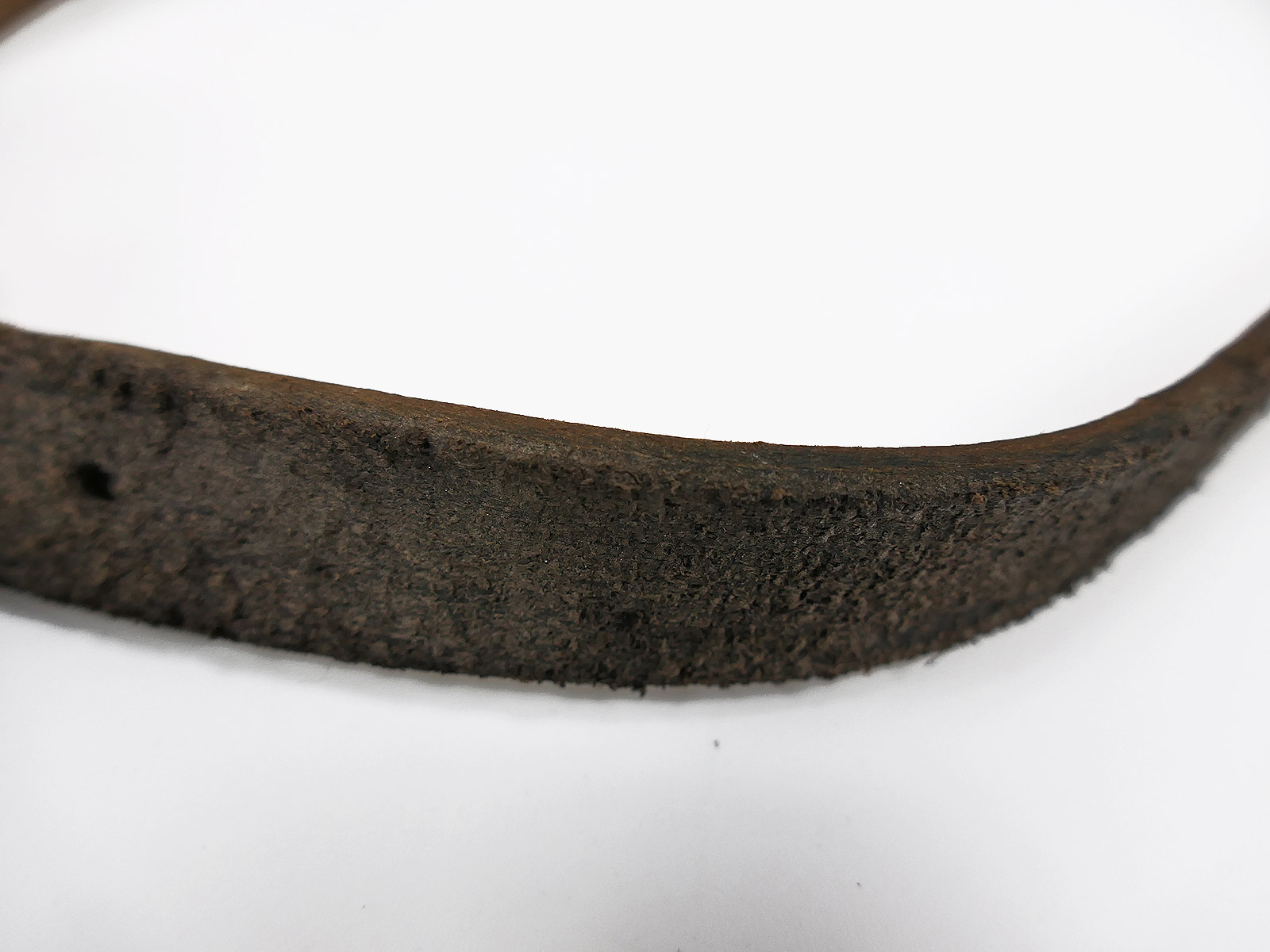 Leder leicht steif, aber nicht brüchig oder verhärtet, der Riemen ist voll benutzbar.