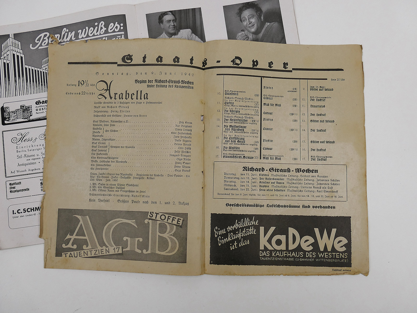Deutsches Reich Programmheft Oper Staatsoper Staatstheater Berlin Arabella 1940