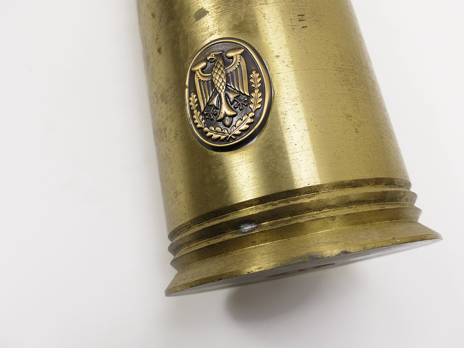 Original Munitionshülse 105mm Messing Hülse Kartusche Panzer Reservisten Geschenk mit Leistungsabzeichen Bundeswehr