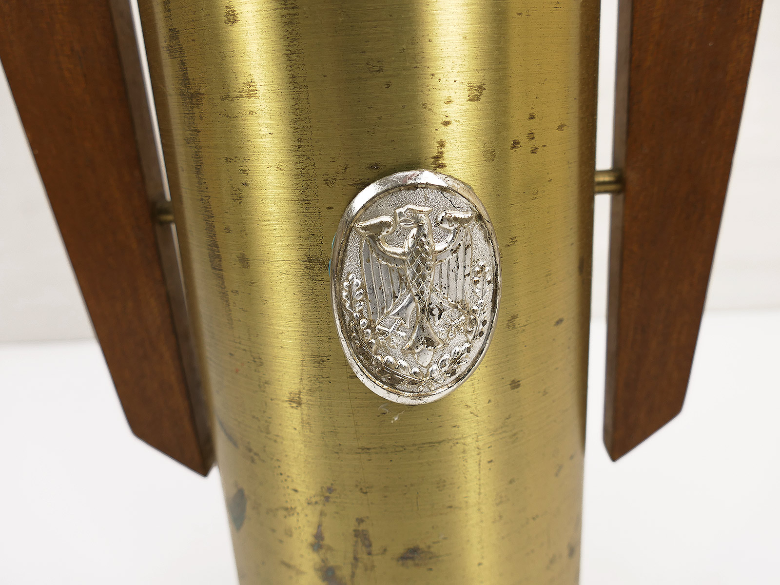 Original Munitionshülse 105mm Messing Hülse Kartusche Panzer Reservisten Geschenk mit Leistungsabzeichen Bundeswehr