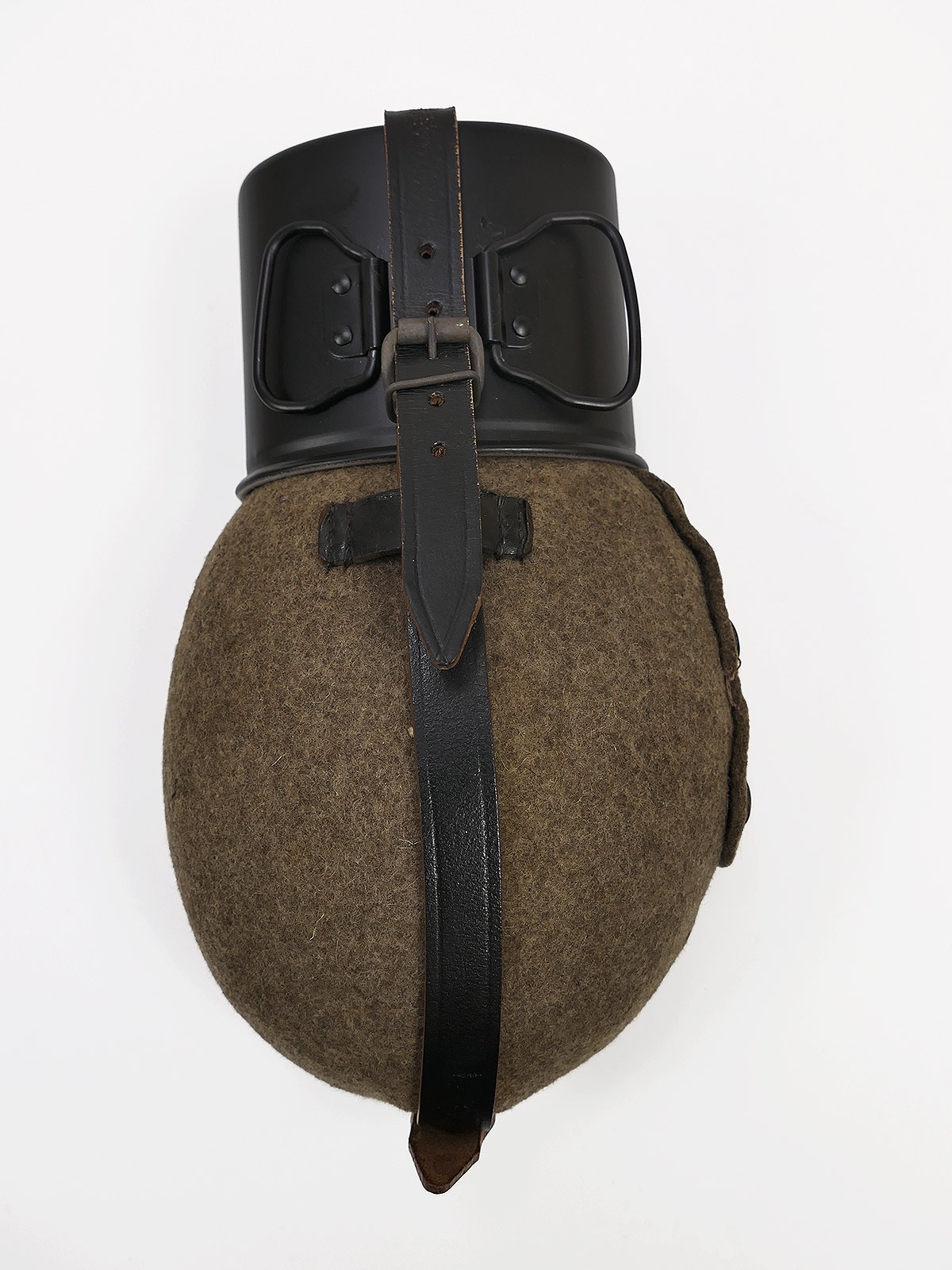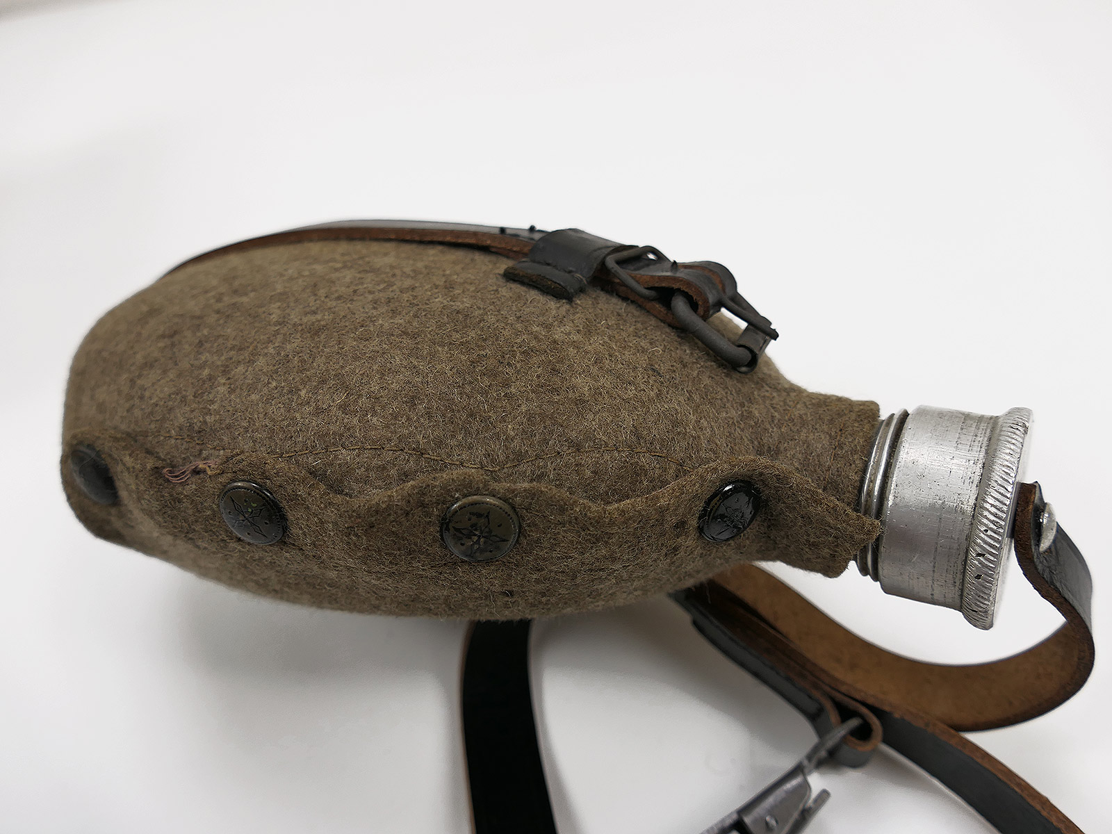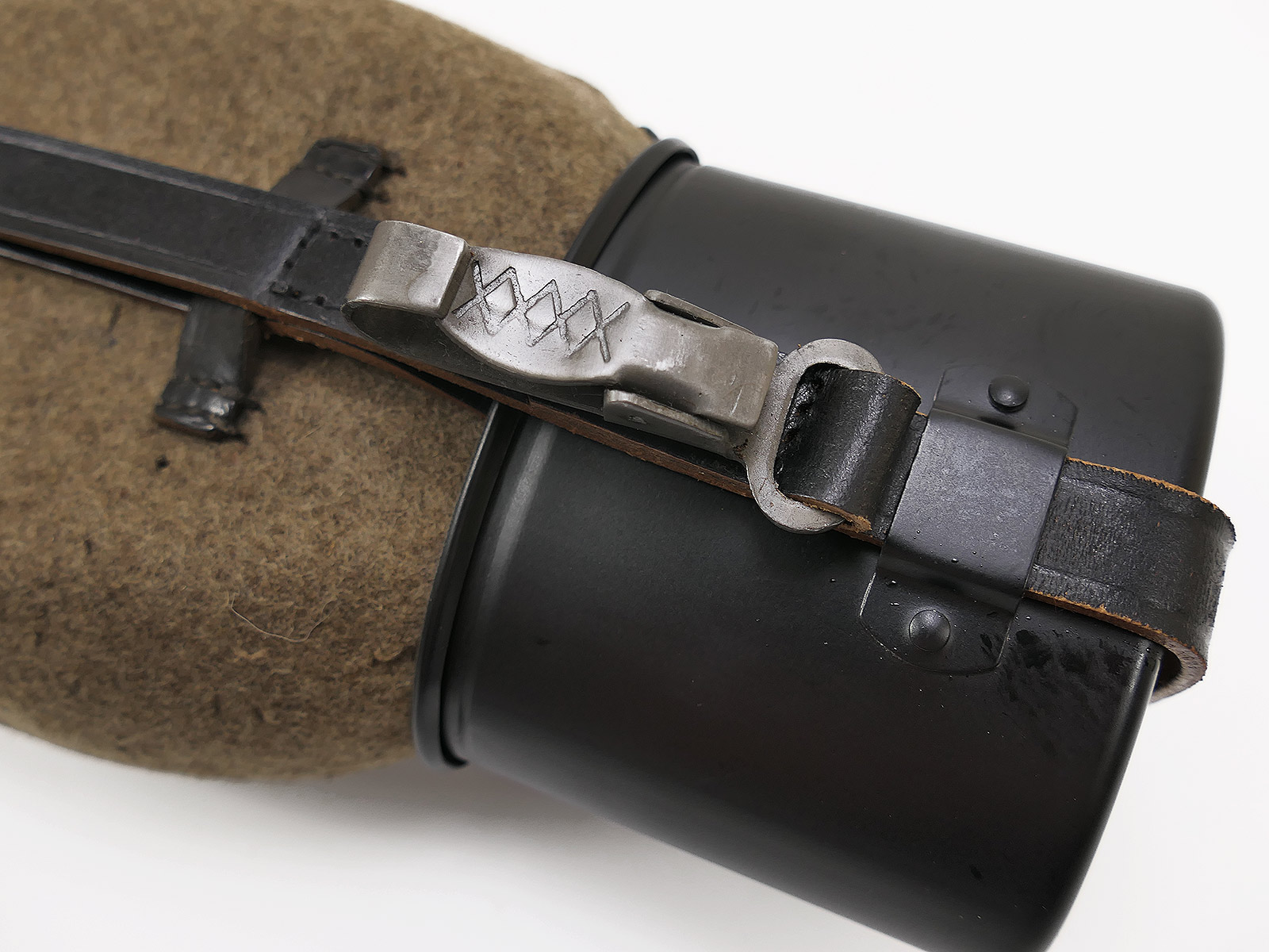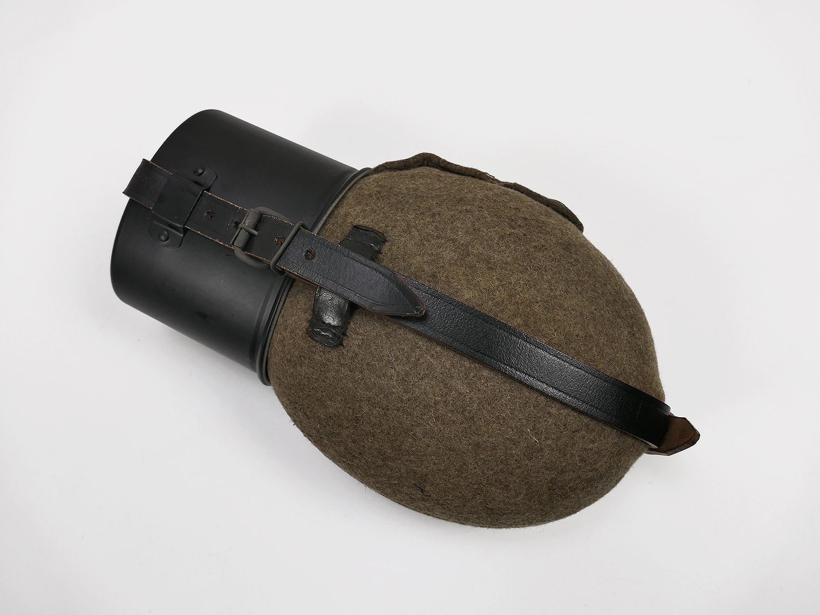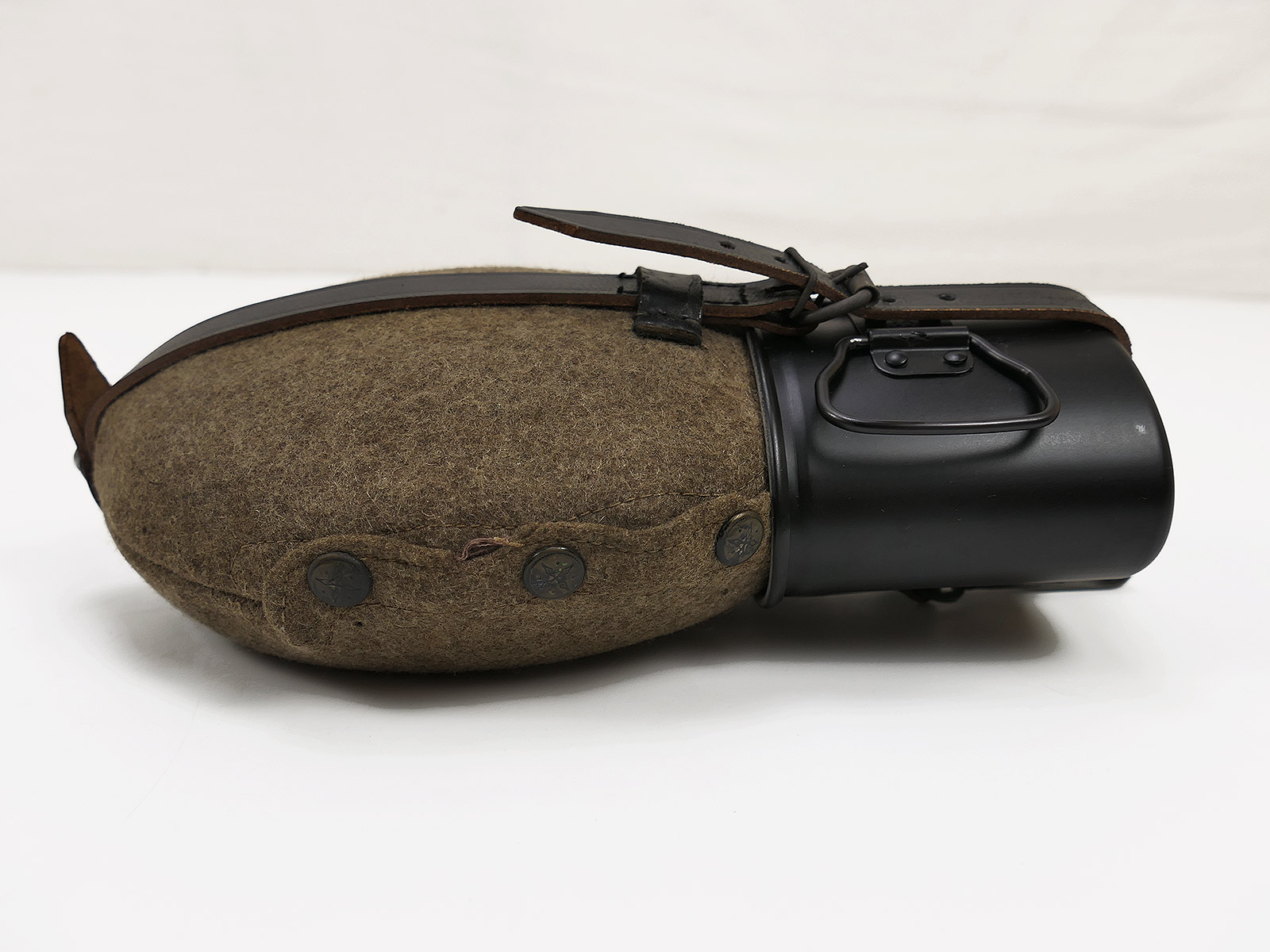 Original RZM Feldflasche, mit Original Bezug und ergänzter Repro Beriemung / Becher.