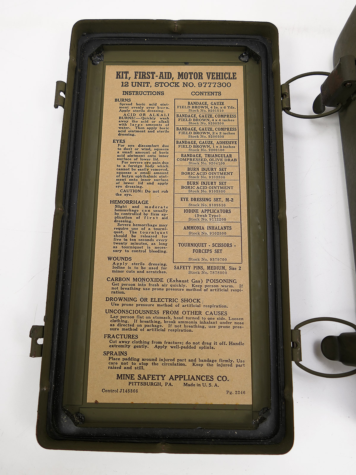 Original US Jeep Verbandkasten aus Metall, mit Original Inhalt.
