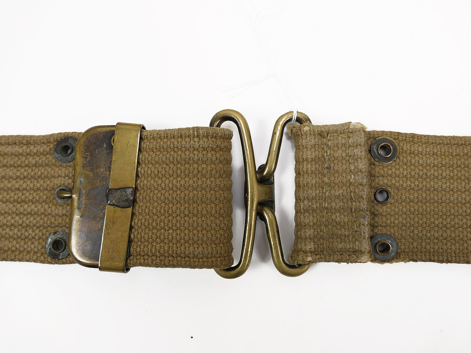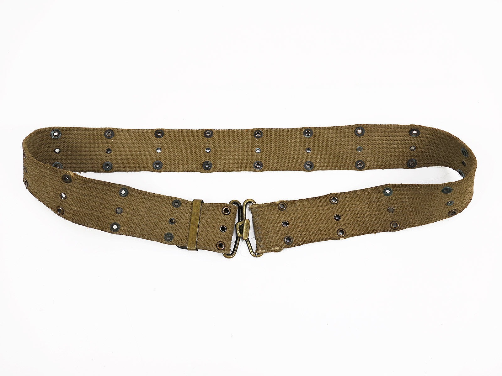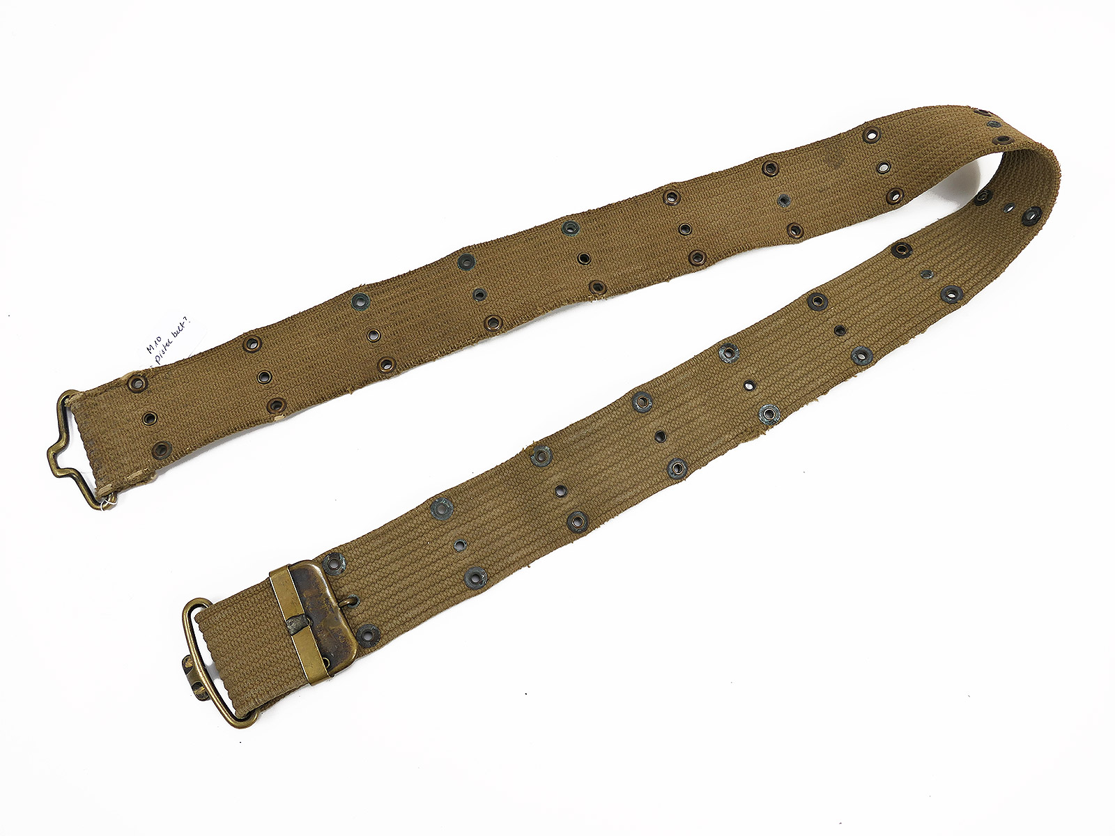 Original US ARMY WW1/WW2 M-1910 Pistol Belt khaki Lochkoppel Koppel Messing / Brass / BATTLE WORN