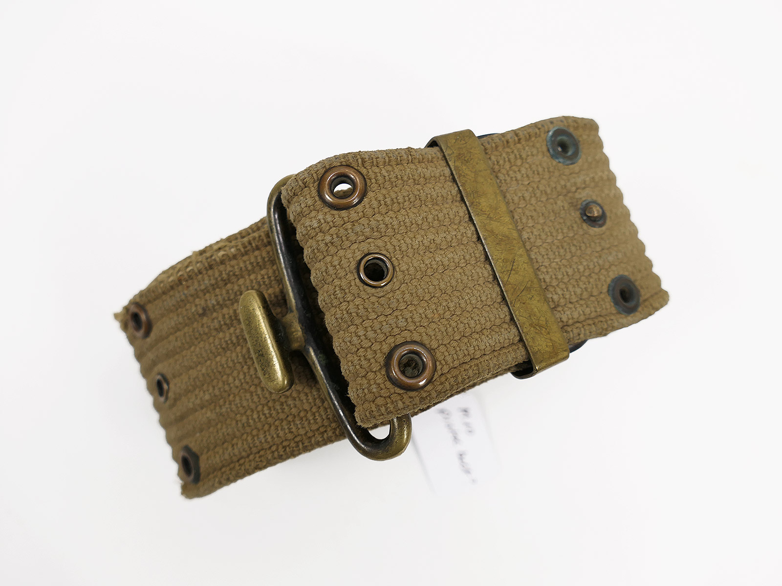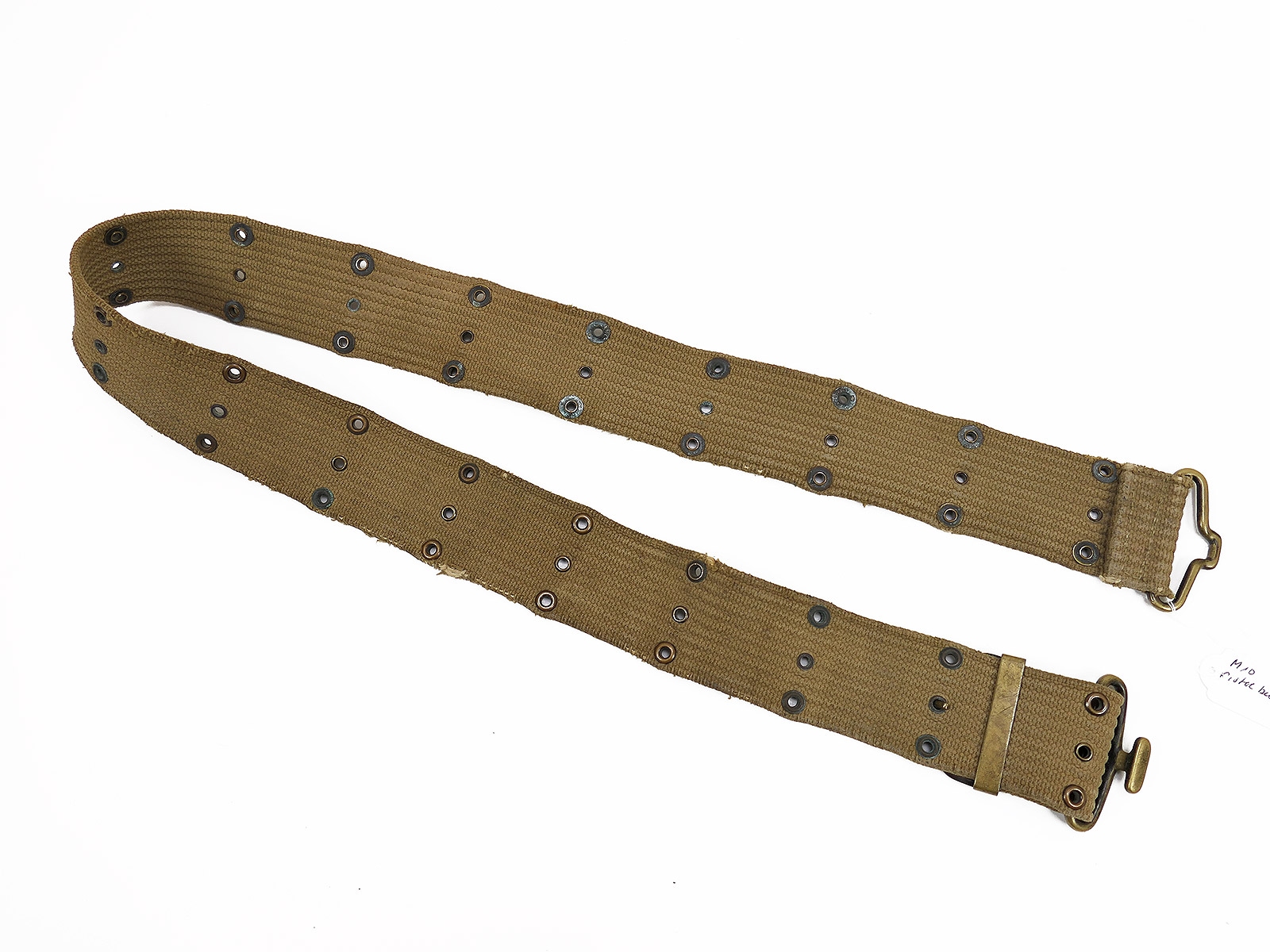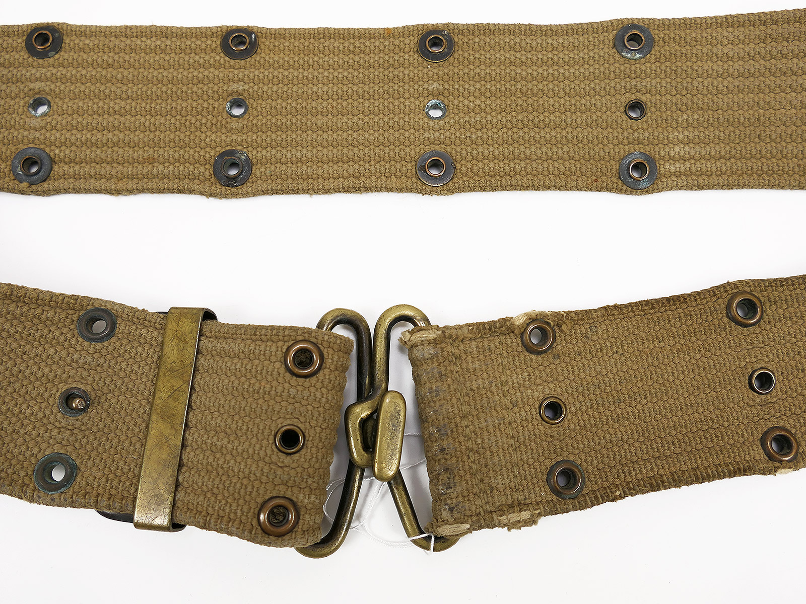 Original US ARMY WW1/WW2 M-1910 Pistol Belt khaki Lochkoppel Koppel Messing / Brass / BATTLE WORN
