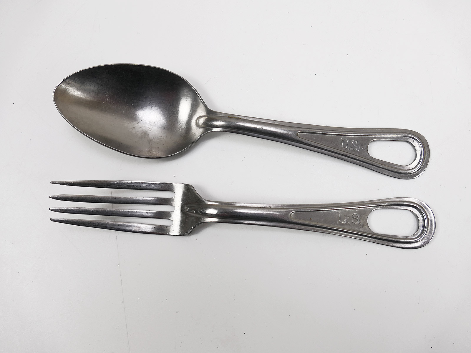 Dazu ein Original US Essbesteck (Gabel, Löffel), Nachkrieg.