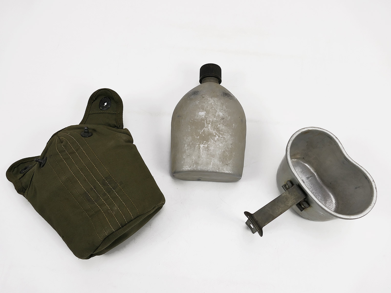 Original US Army WW2 Feldflasche mit Becher und Bezug alle Teile 1945