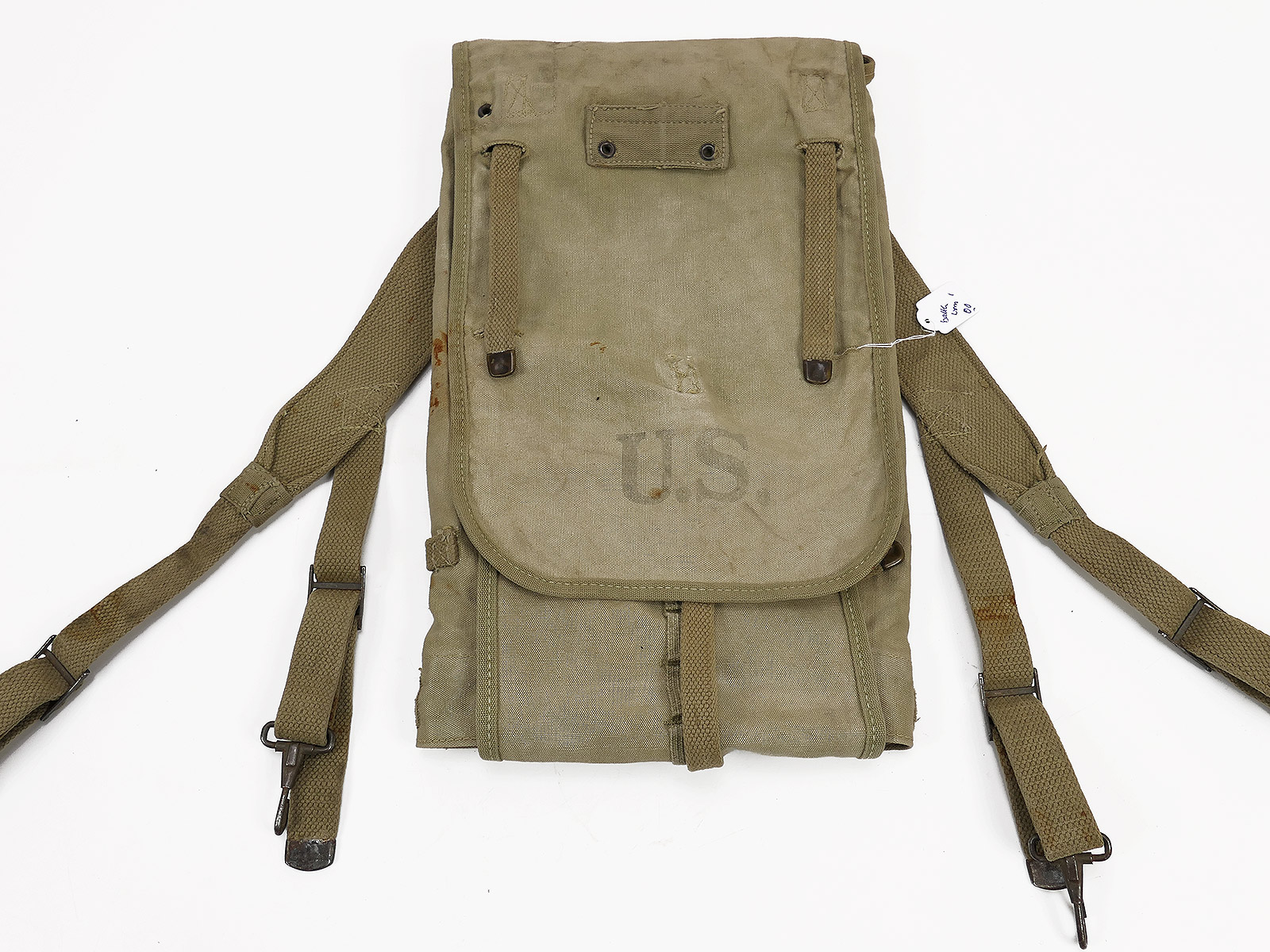 Original US Army WW2 M-1928 Haversack khaki / Collection BATTLE WORN