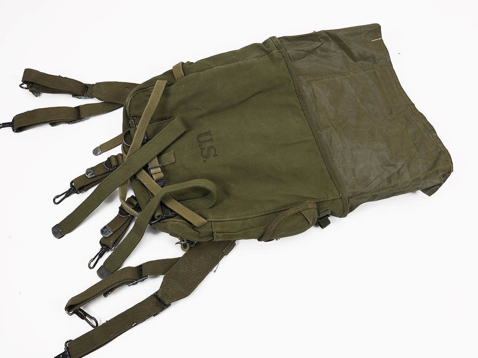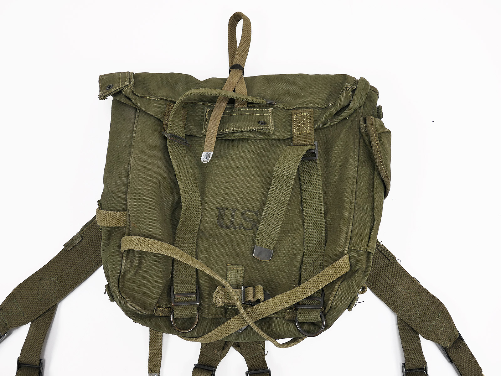 Original US Army WW2 M-1945 Combat Pack Field + Suspenders 1945 / Collection BATTLE WORN
