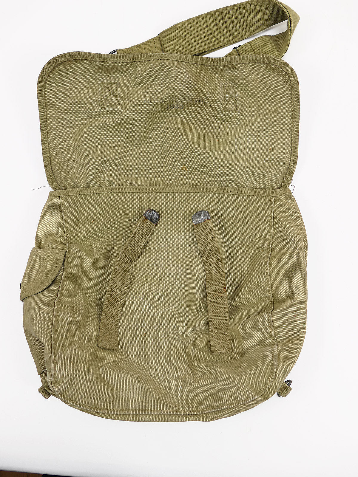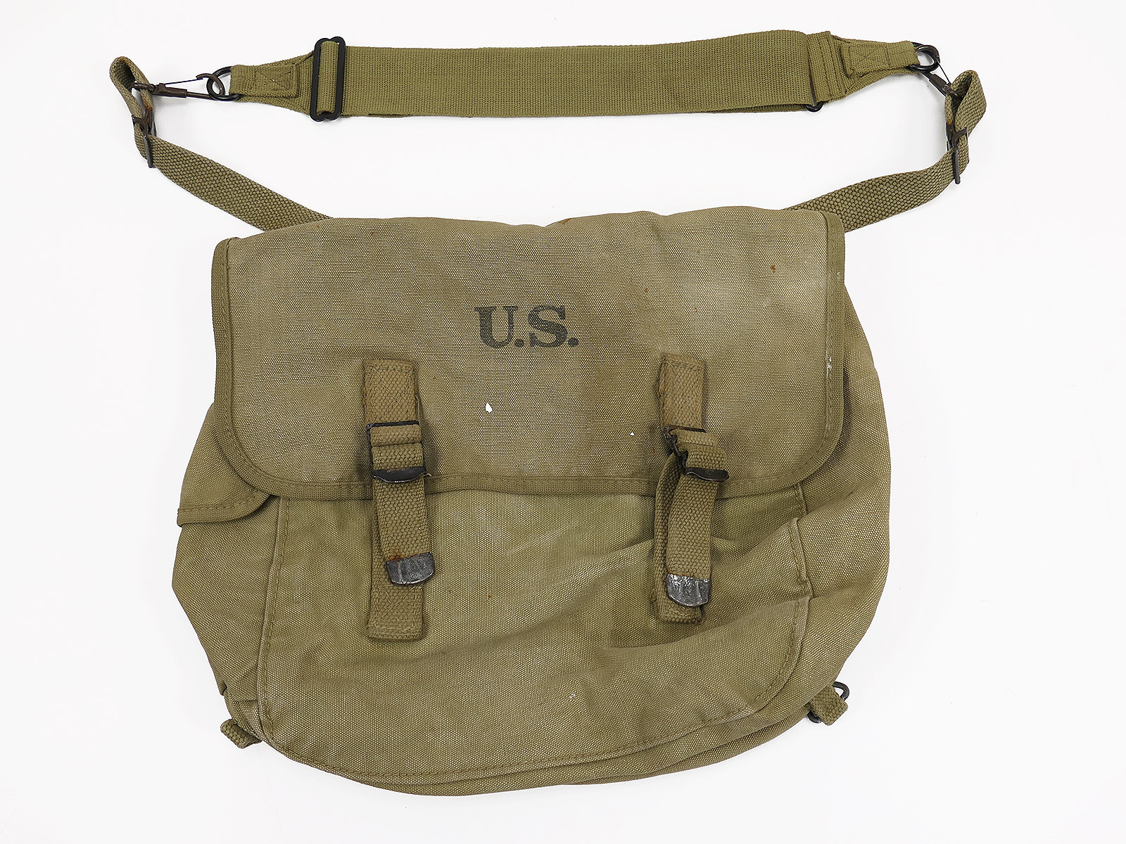 Original US Army WW2 Musette Bag M-1936 khaki / Collection BATTLE WORN NORMANDIE