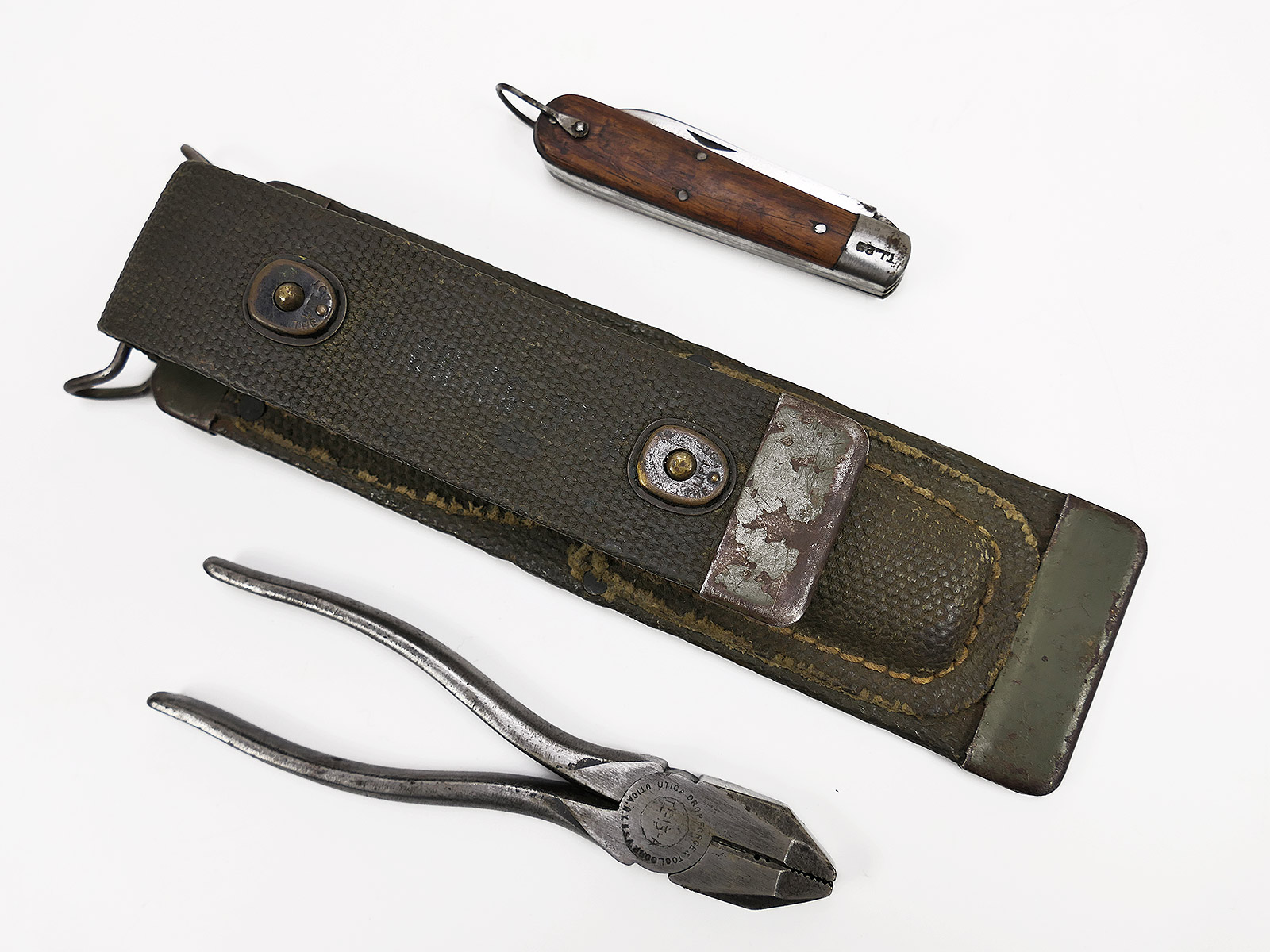 Original US ARMY WW2 Signal Corps Lineman’s Tool Set with CS-34 CANVAS Pouch TL-29 Pocket Knife & Original Pliers