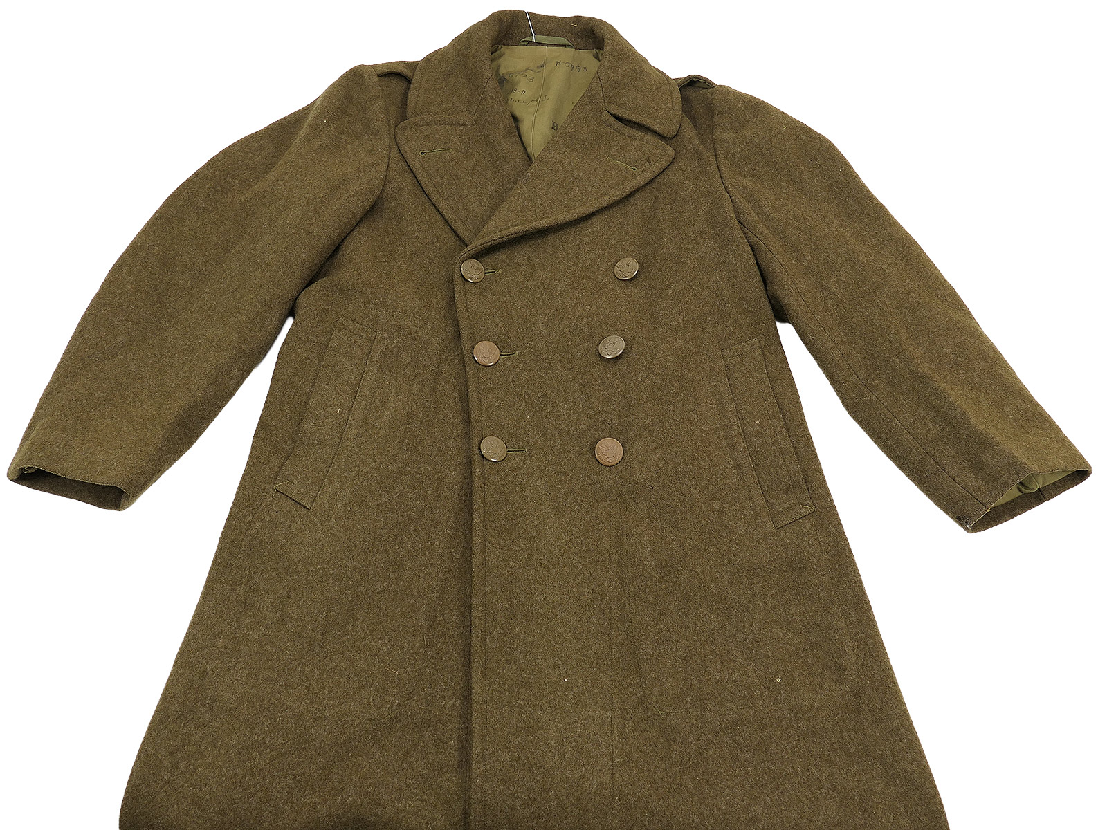 Original US WW2 Overcoat Wool OD Melton Mantel May 1945 Gr. 38R Wintermantel TOP Collection BATTLE WORN