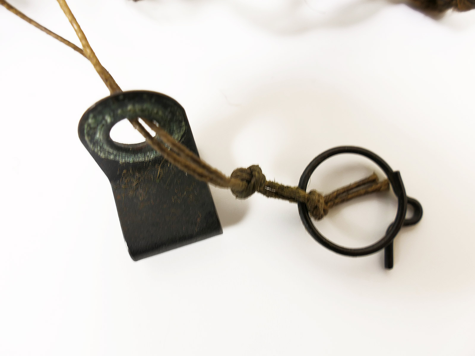 Mit 2 Metallhaken und Anweisung (Kopierter Zettel)