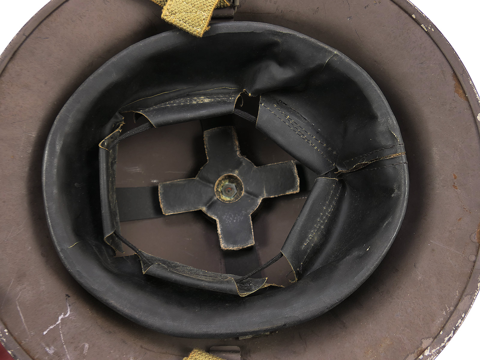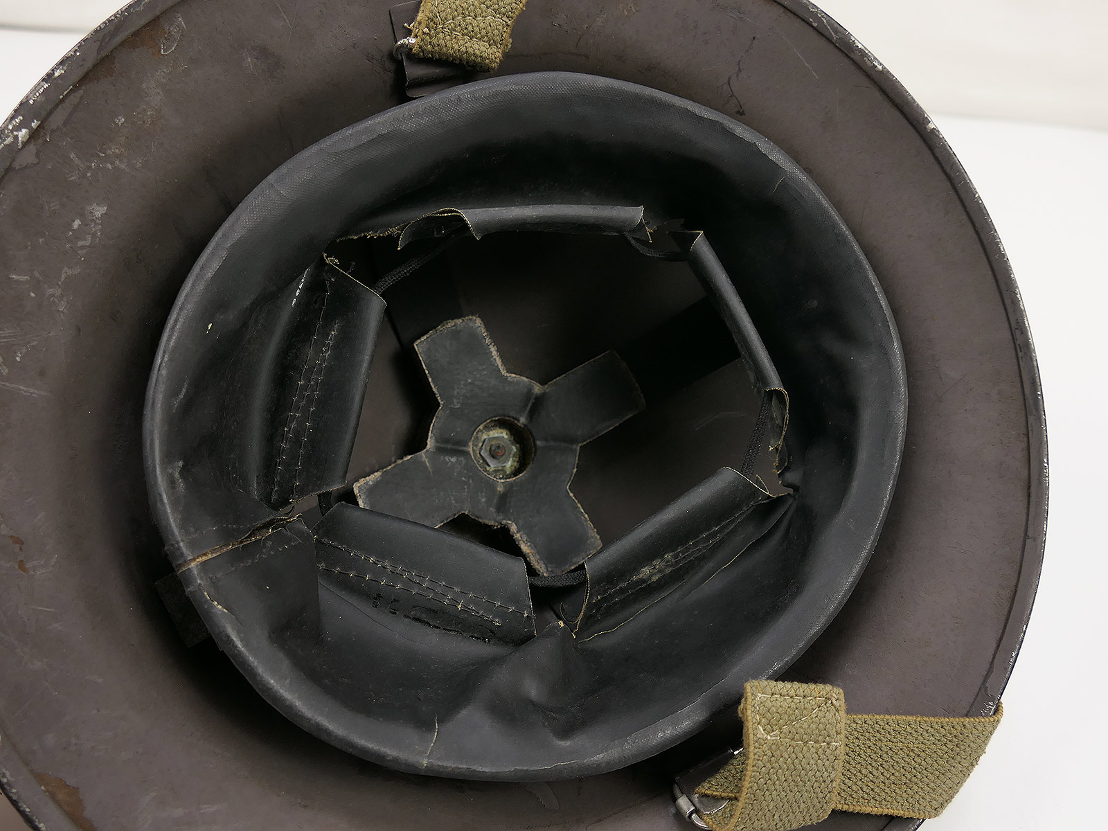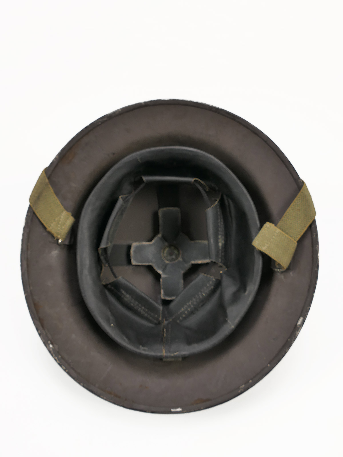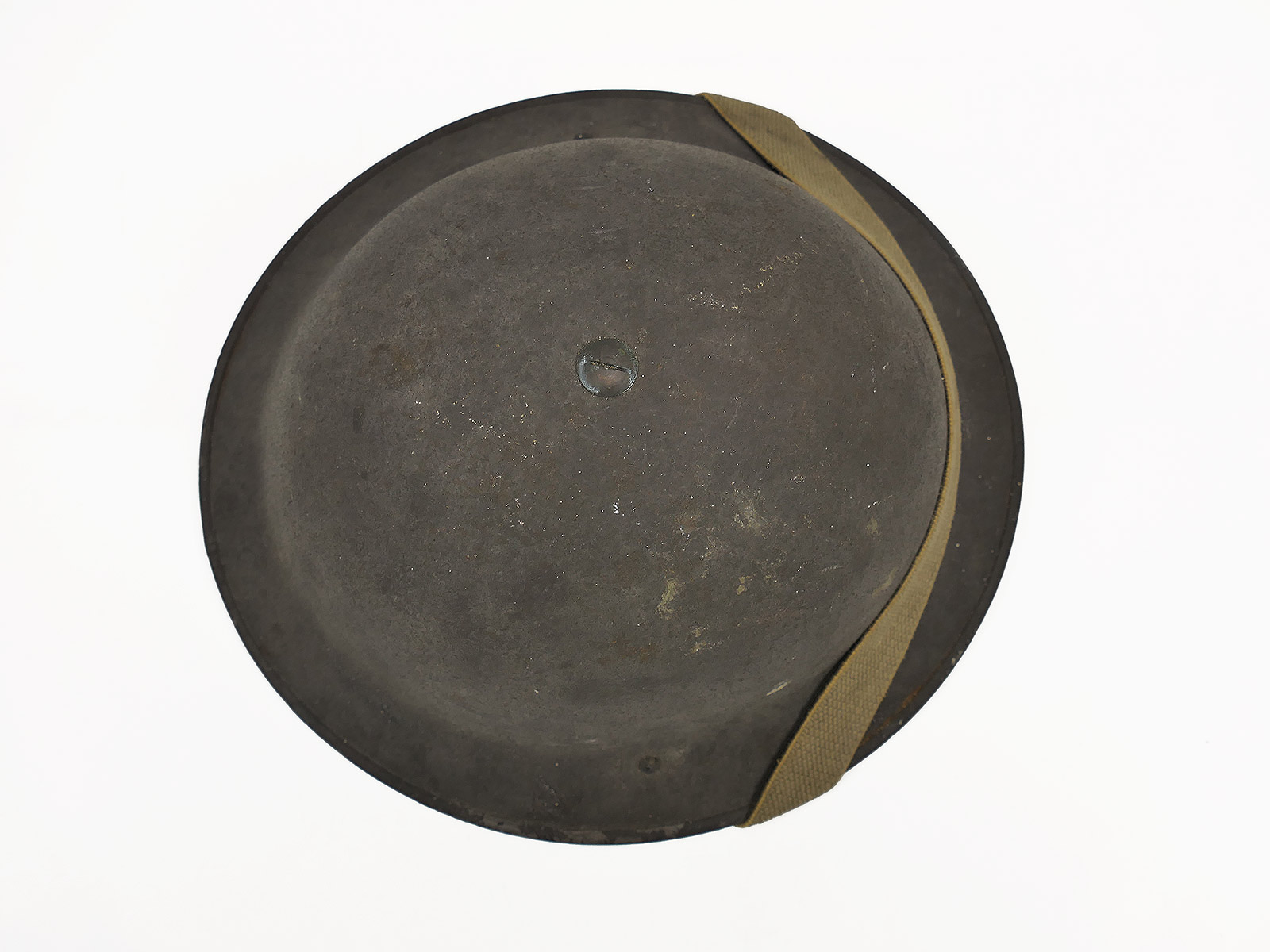 Original WW2 Tellerhelm Englisch Brodie Stahlhelm mit Helmfutter u. Kinnriemen British Army