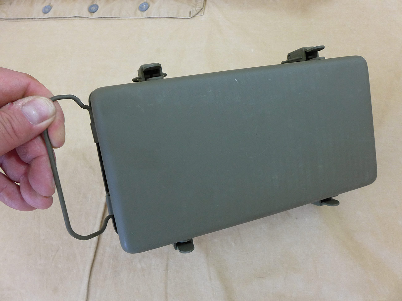Perfekt für den Jeep, ohne Inhalt, ca. 23x12x7cm. Metallbox mit Gummidichtung.