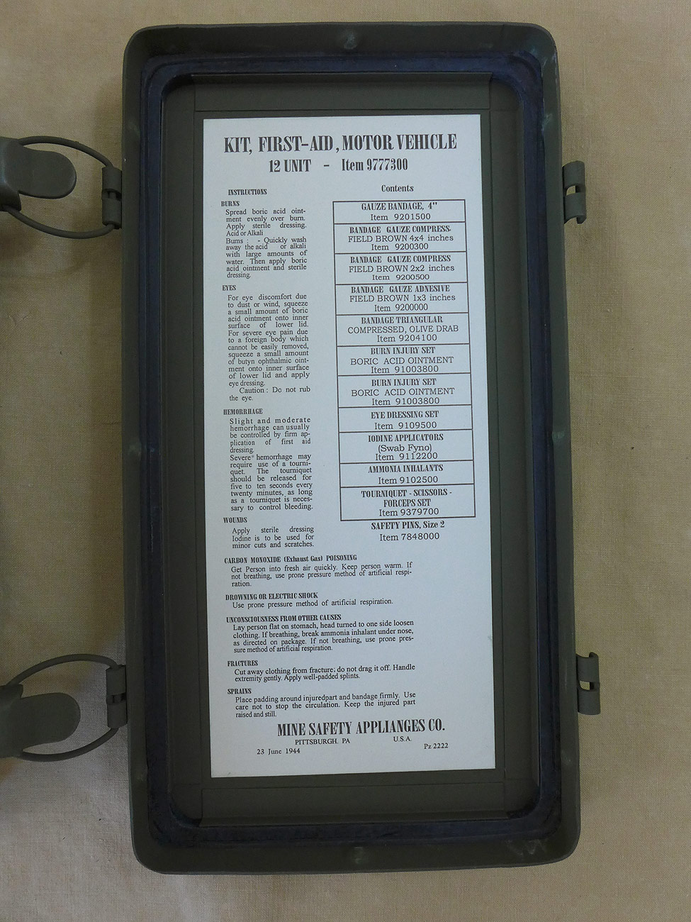 US ARMY First Aid Kit Box Emergency Verbandkasten leer Willys Jeep MB Ford GPW