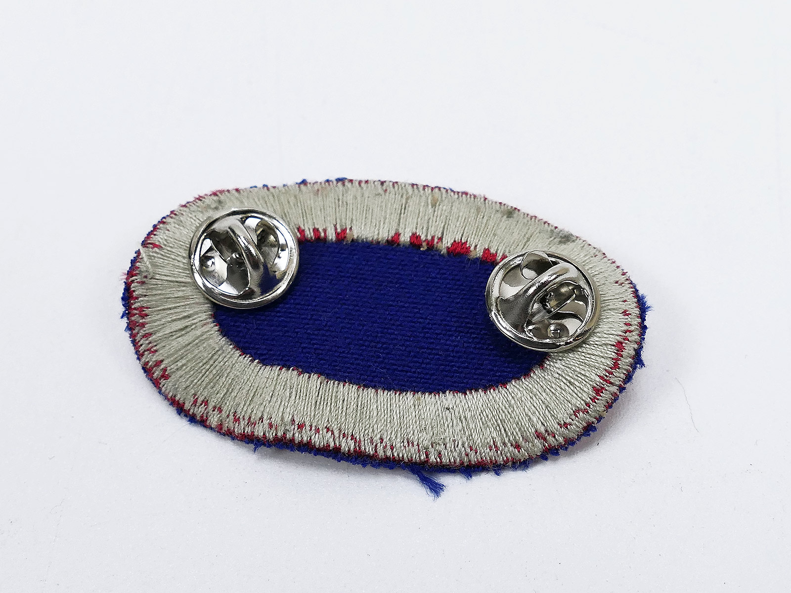 Das wing oval aus original Stoff aus den End-40er Jahren, die Metallauflage ist eine Sammleranfertigung.