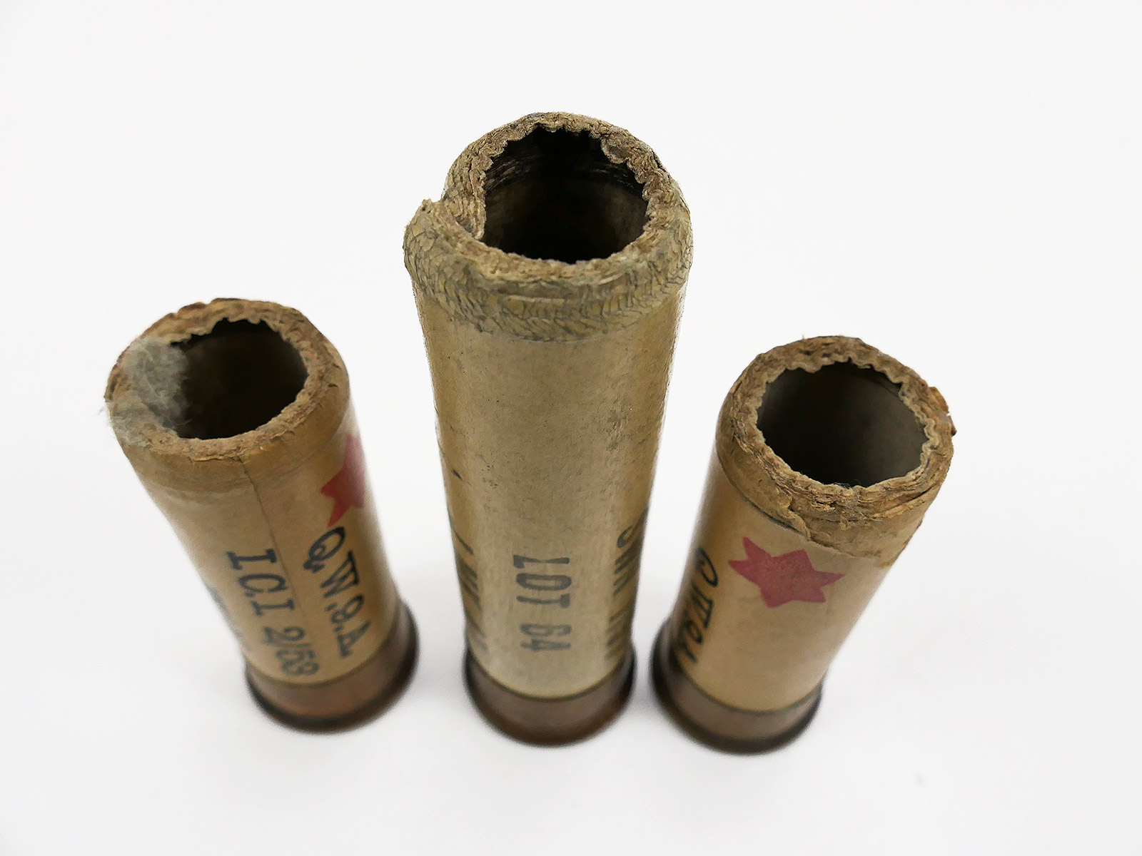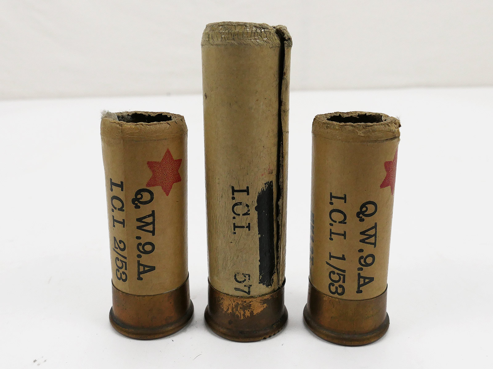 3x leere US Leucht-/Signalpatronen, Cartridges, datiert,