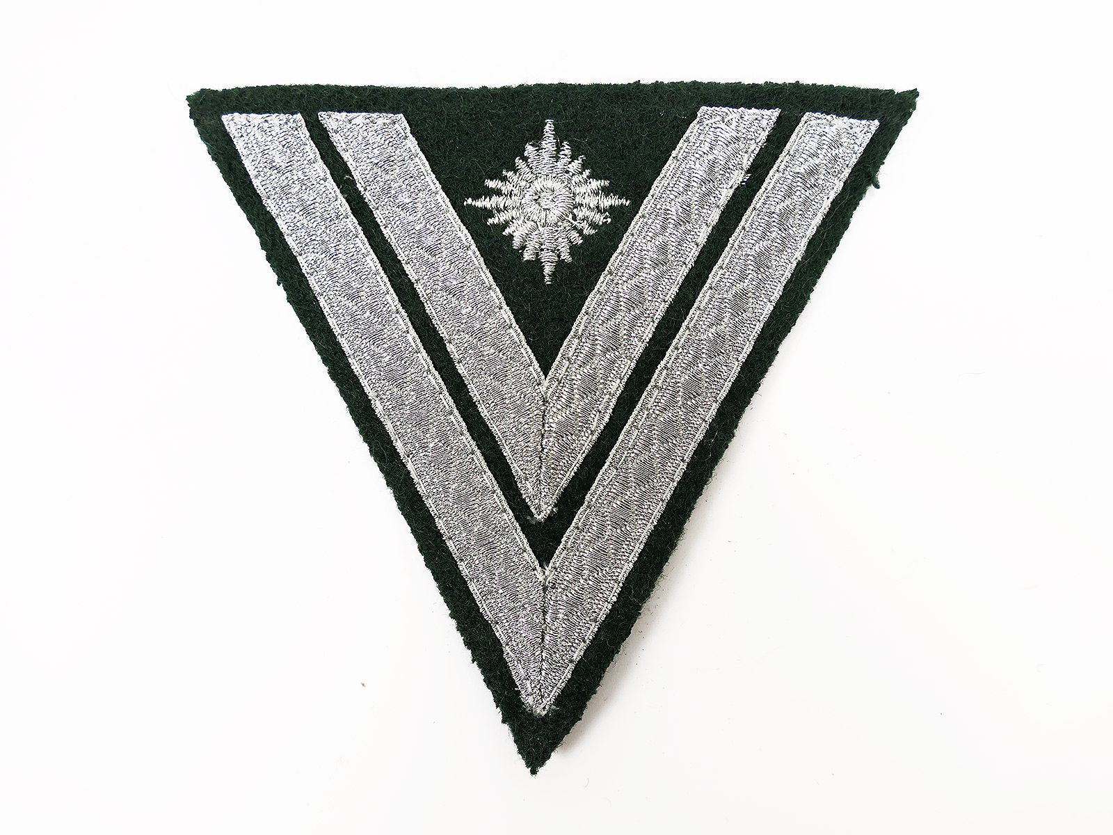 Armwinkel Stabsgefreiter, Stern gestickt, tief dunkel flaschengrüner Grund.