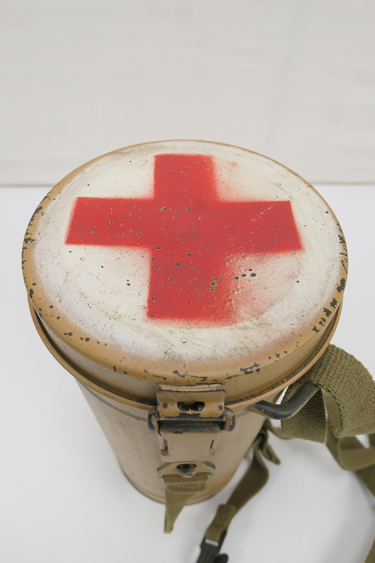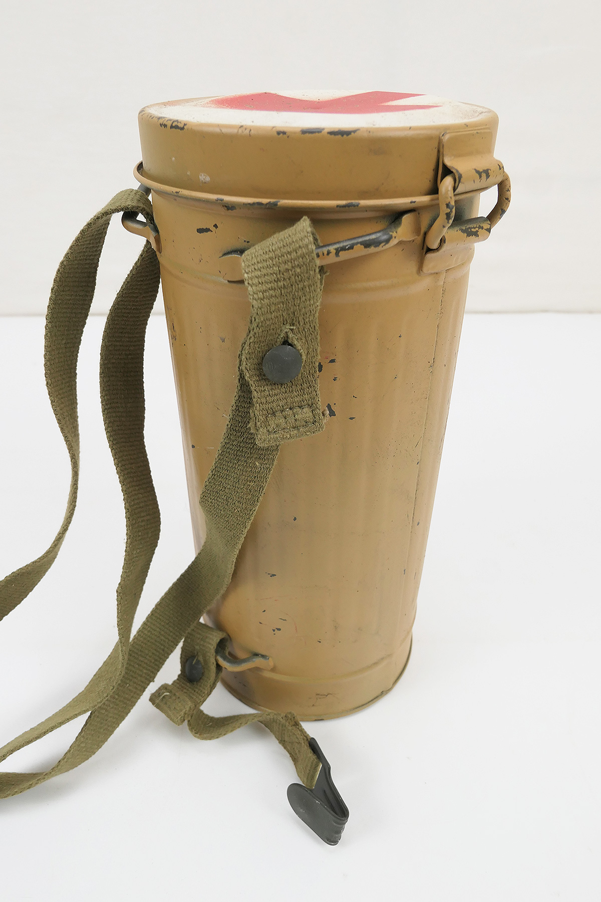 #D DAK Afrikakorps Gasmaskendose Tarnanstrich Rotkreuz Sanitäter Schutzmaskenbüchse mit Beriemung