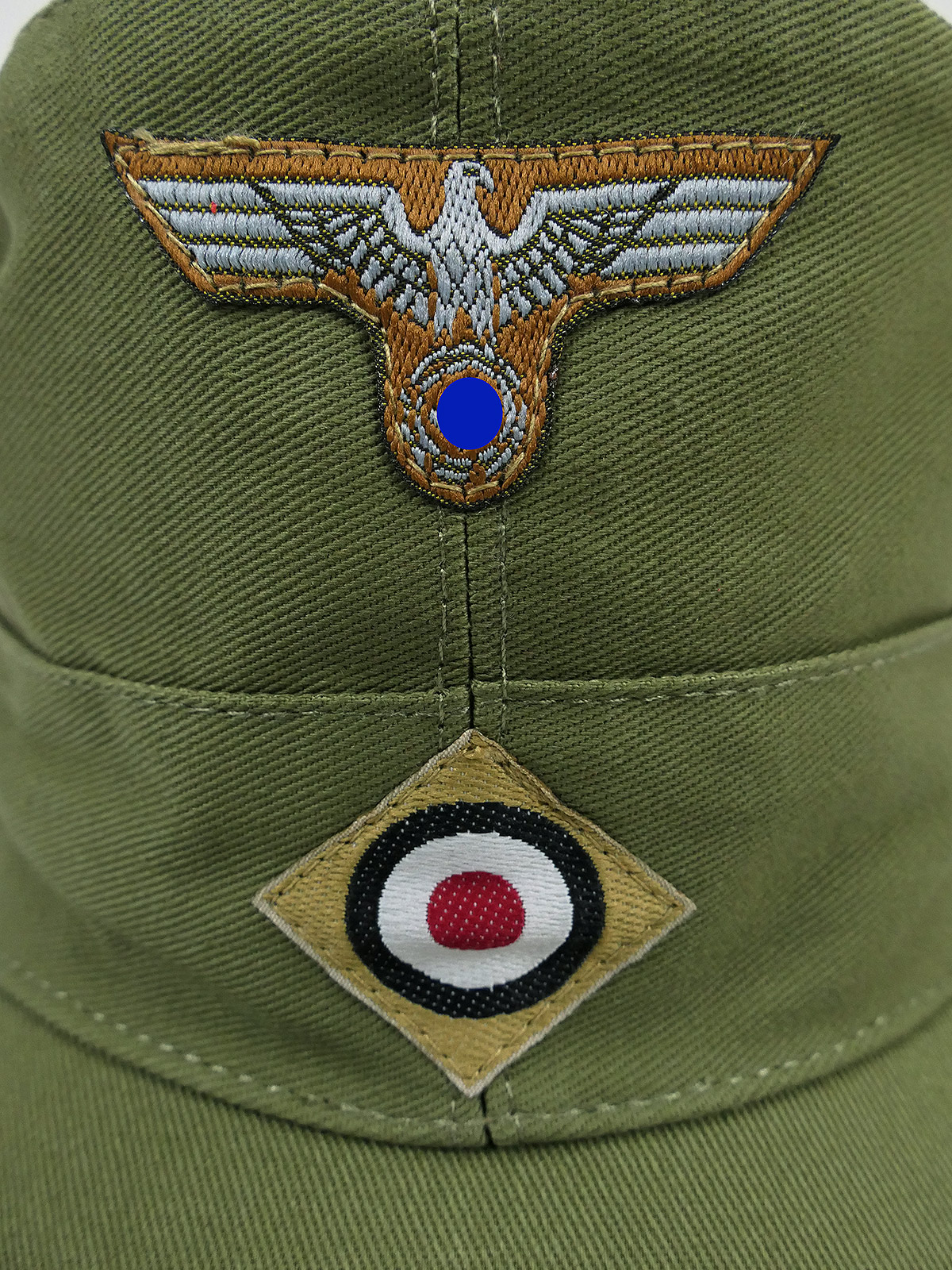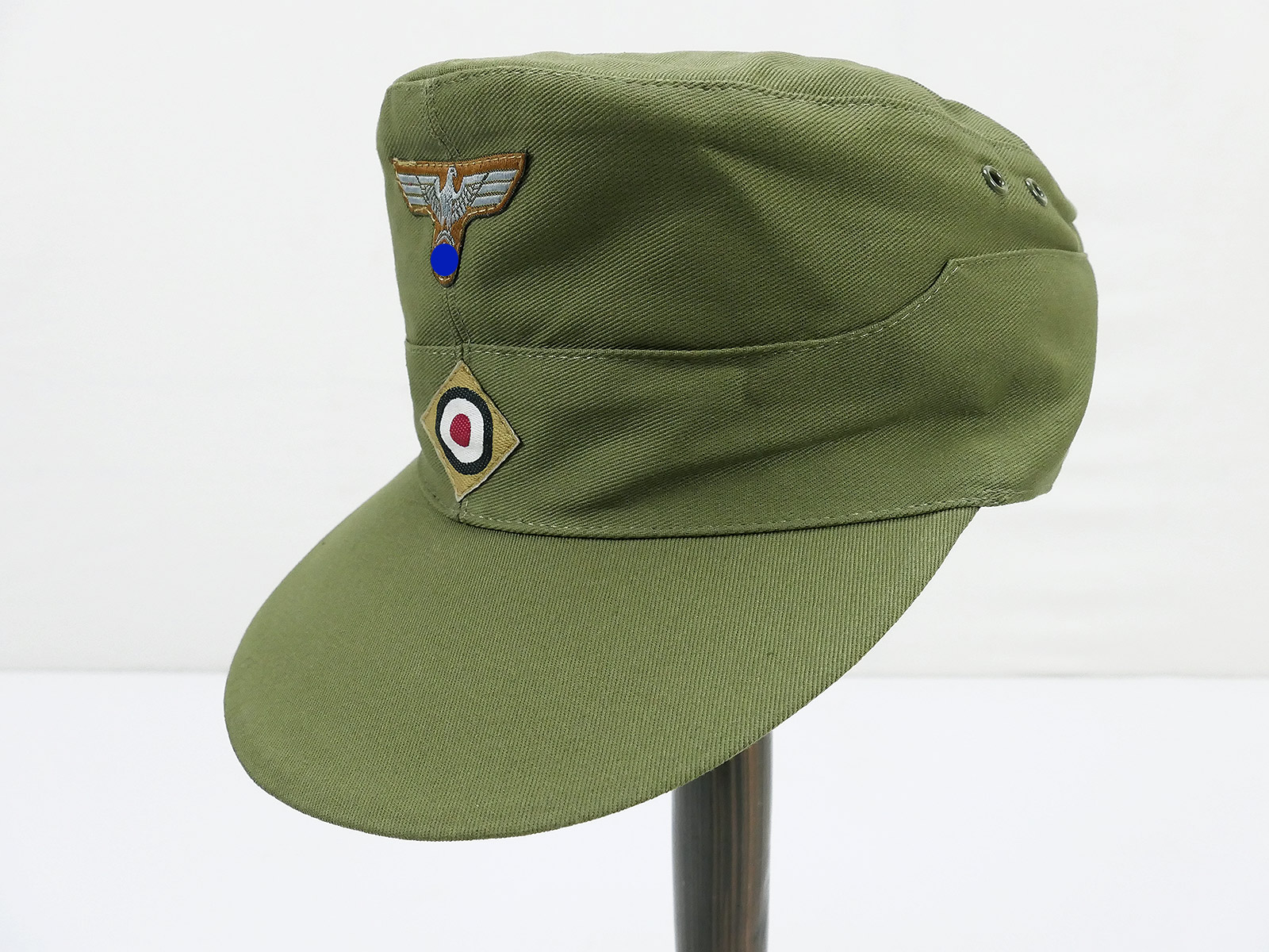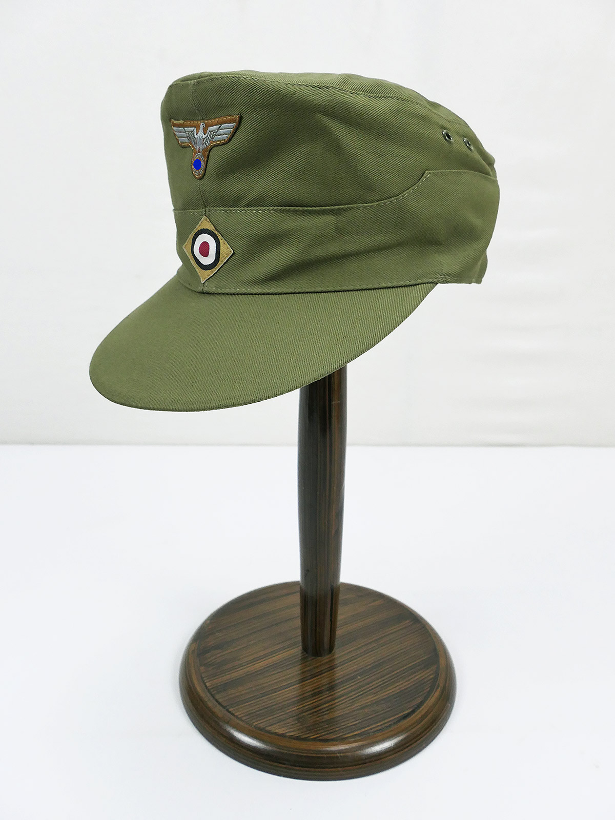 M41 Feldmütze des Deutschen Afrikakorps mit unter dem Innenfutter vernähten Effekten, DAK Mützenadler und Kokarde.