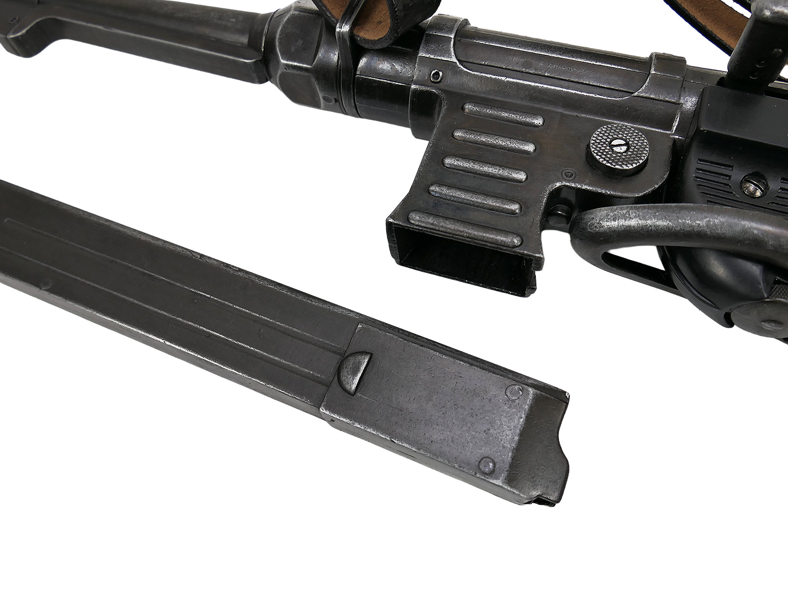 "Modell-Verschluß" kann gespannt werden. Magazinhalter beweglich, Magazin entnehmbar.