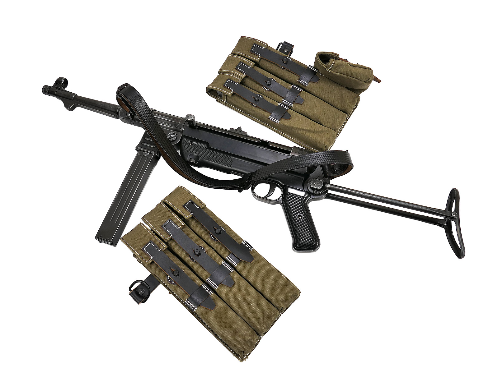 SET MP40 Maschinenpistole Wehrmacht Deko Metall Modell mit Riemen + 2 Magazintaschen