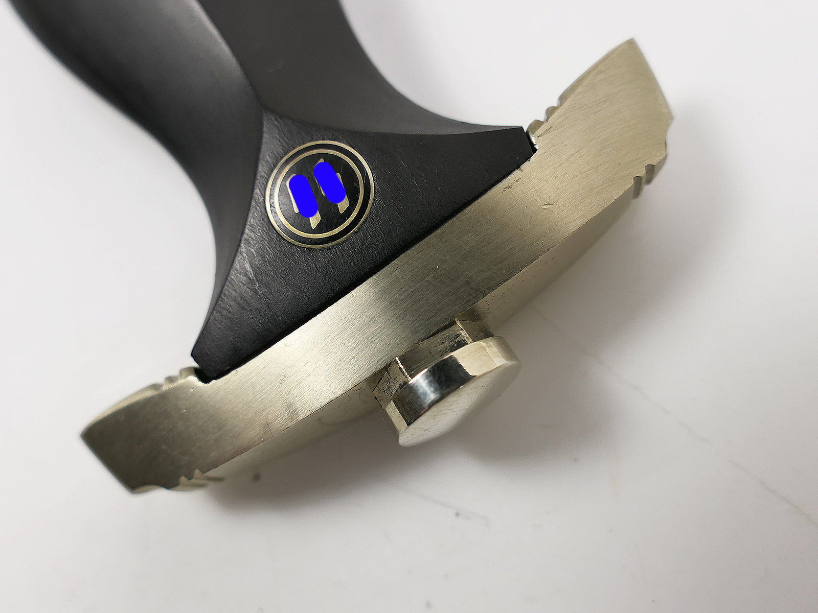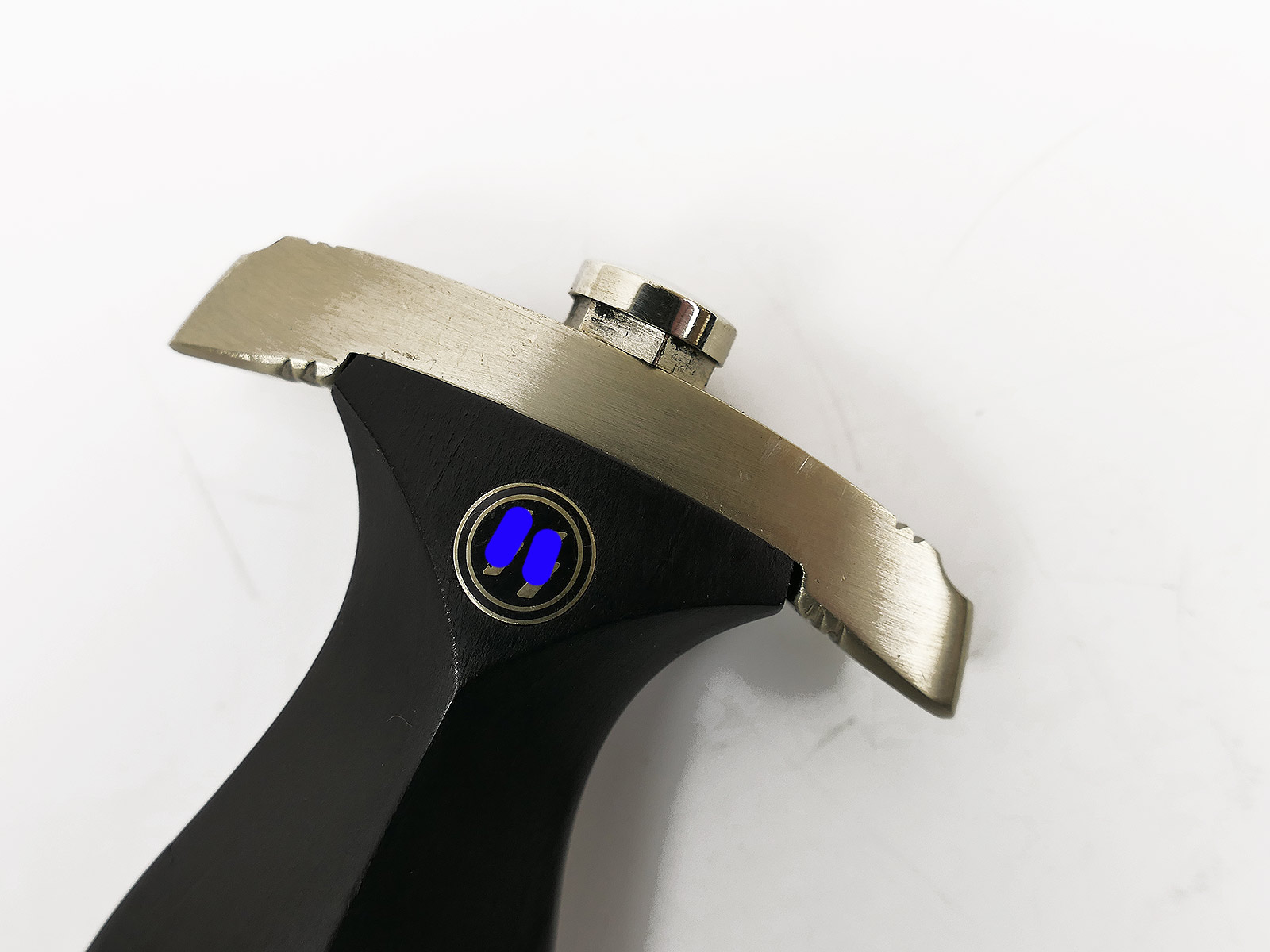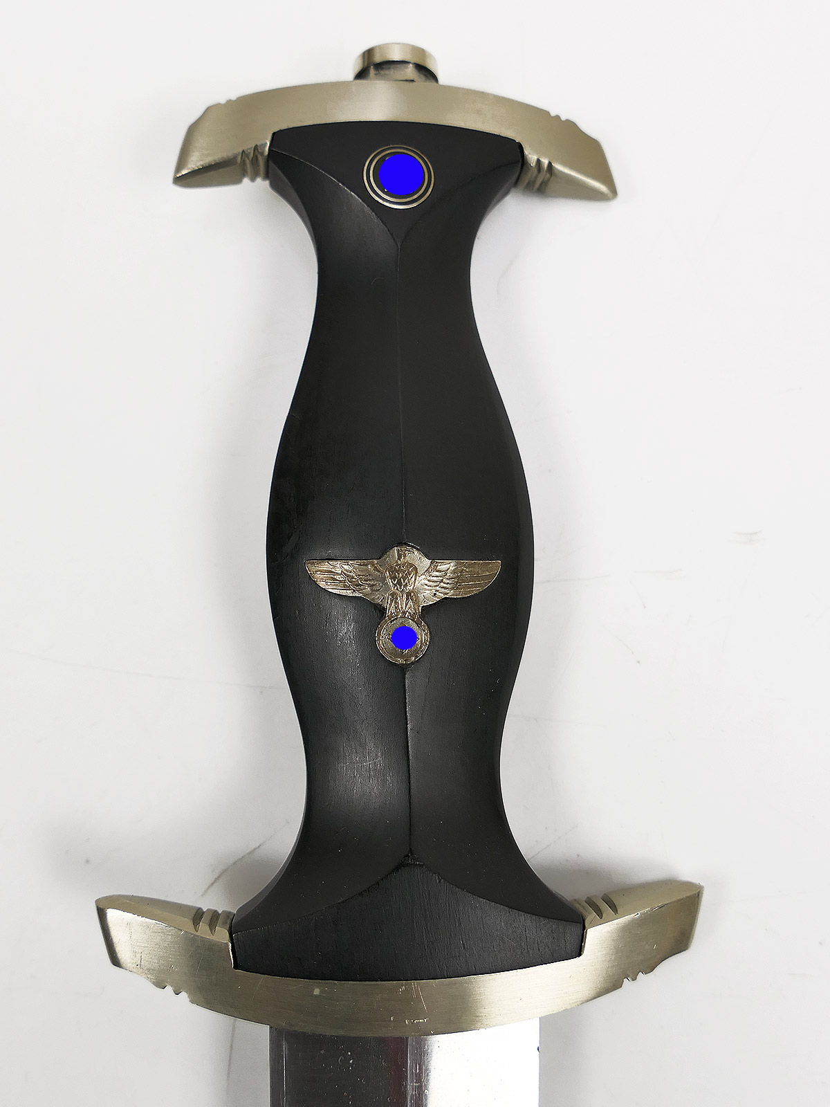 Komplett aus Metall, der Griff aus Holz. Scheidenbeschläge, Klinge.....alles magnetisch.