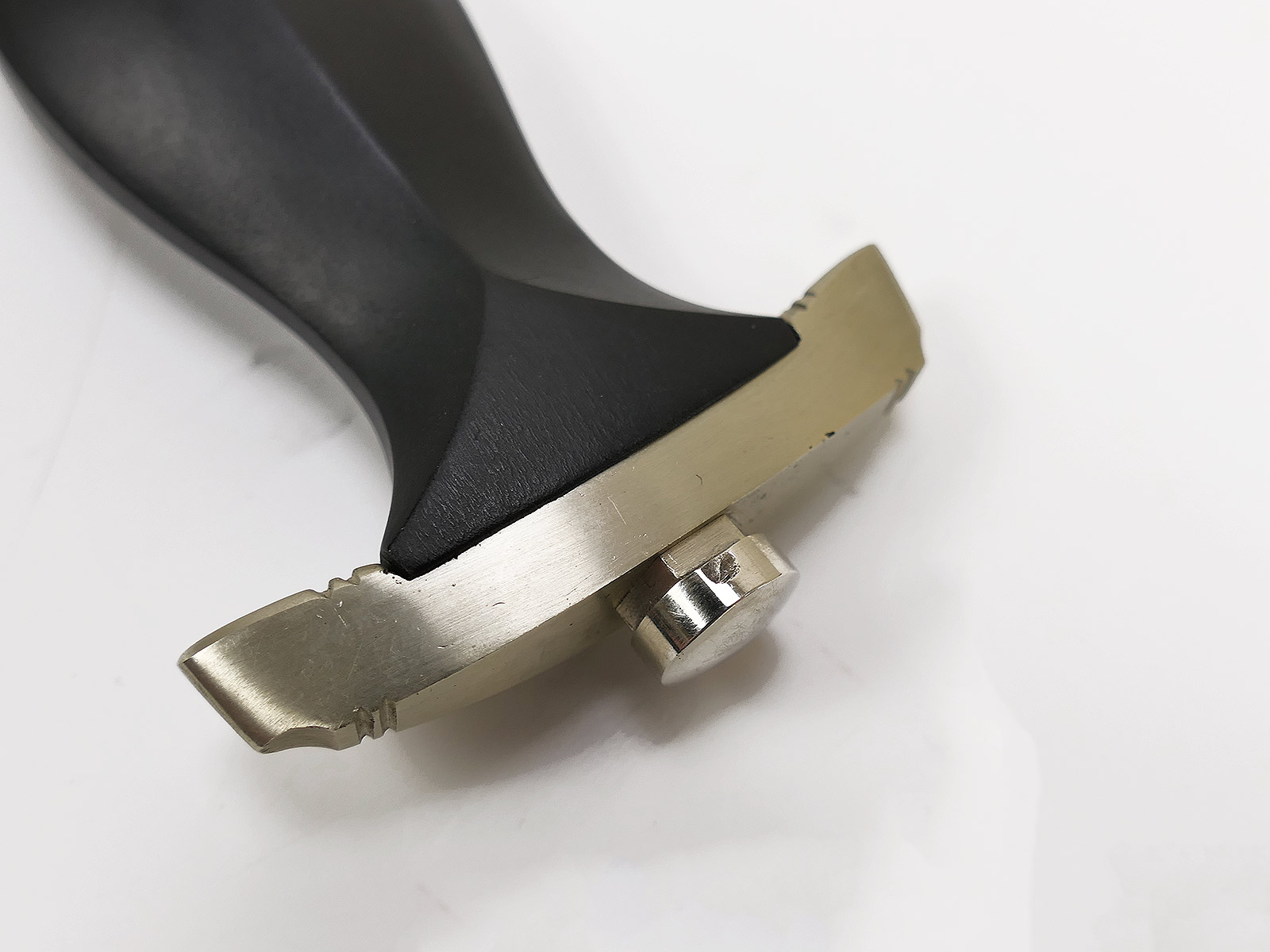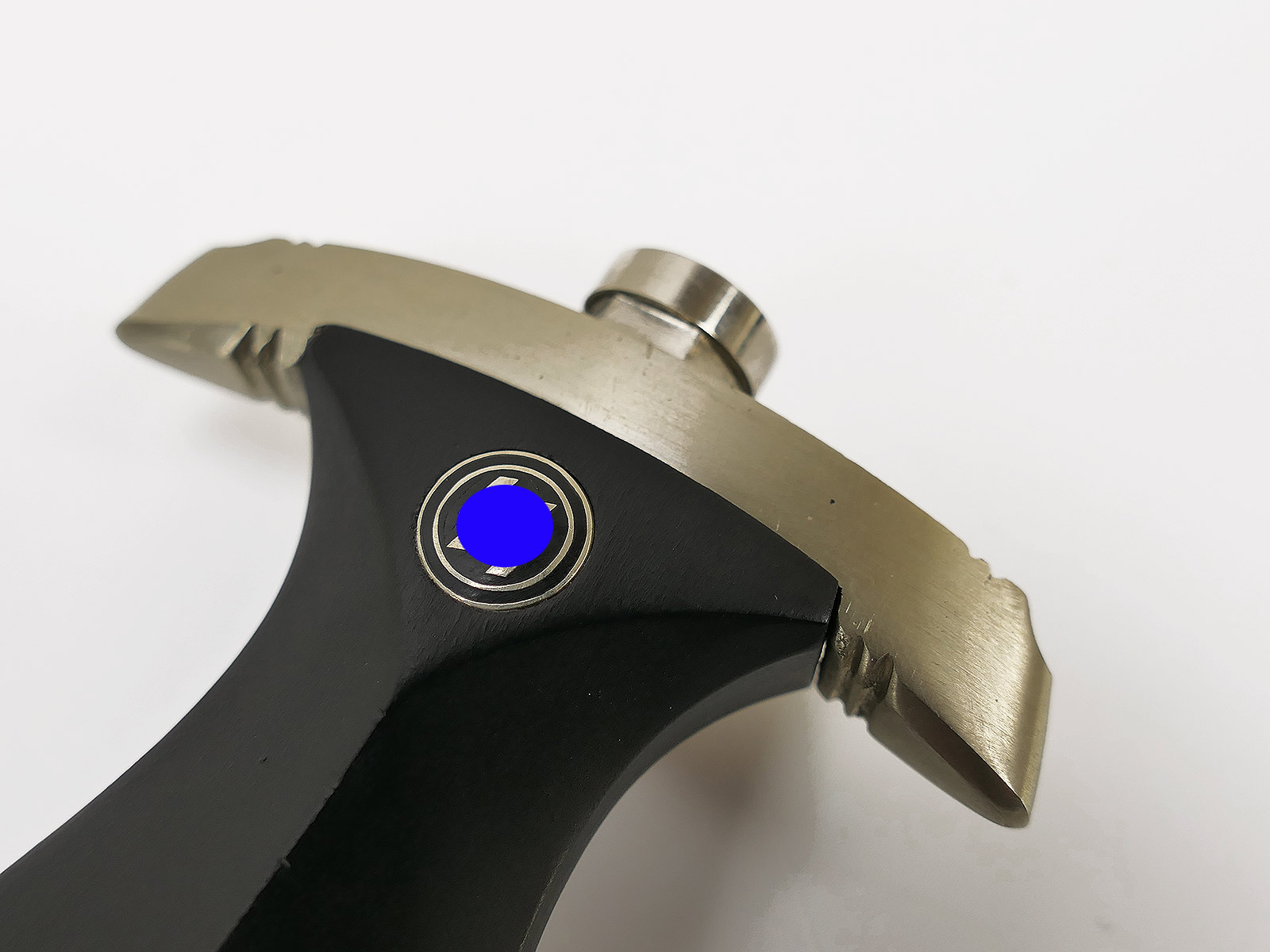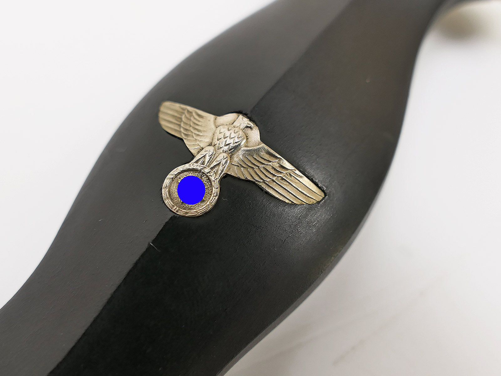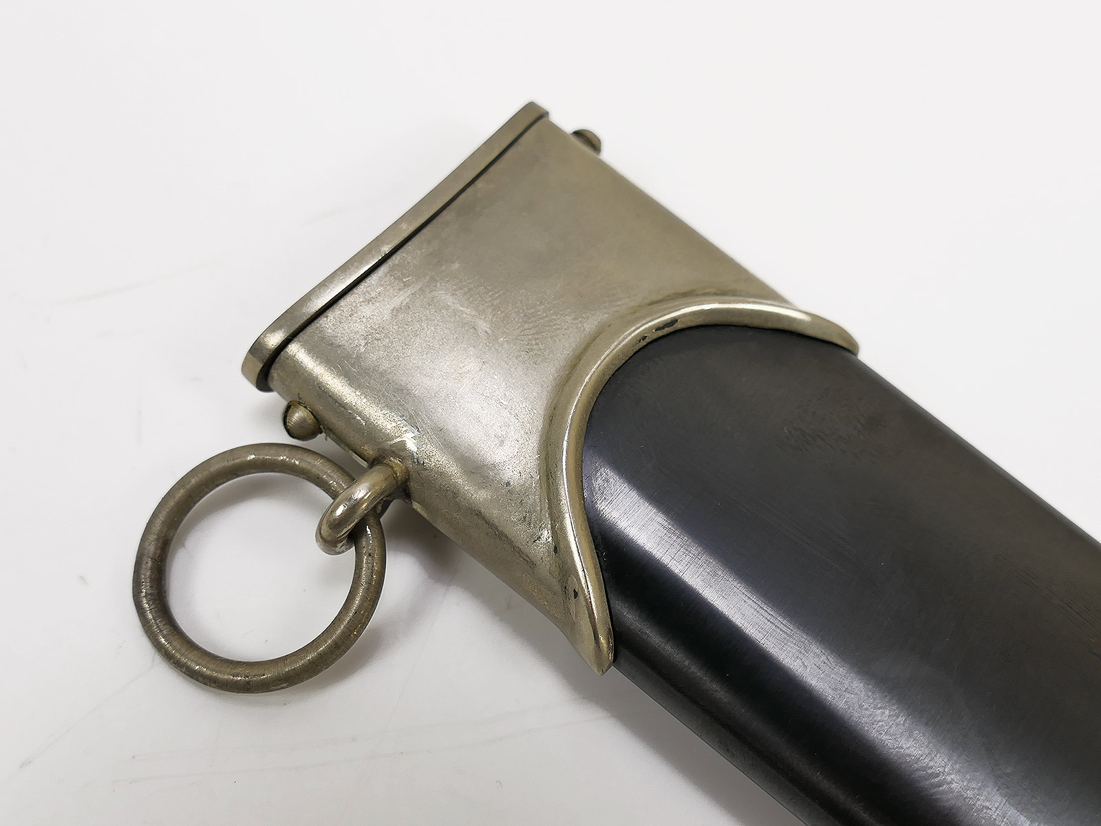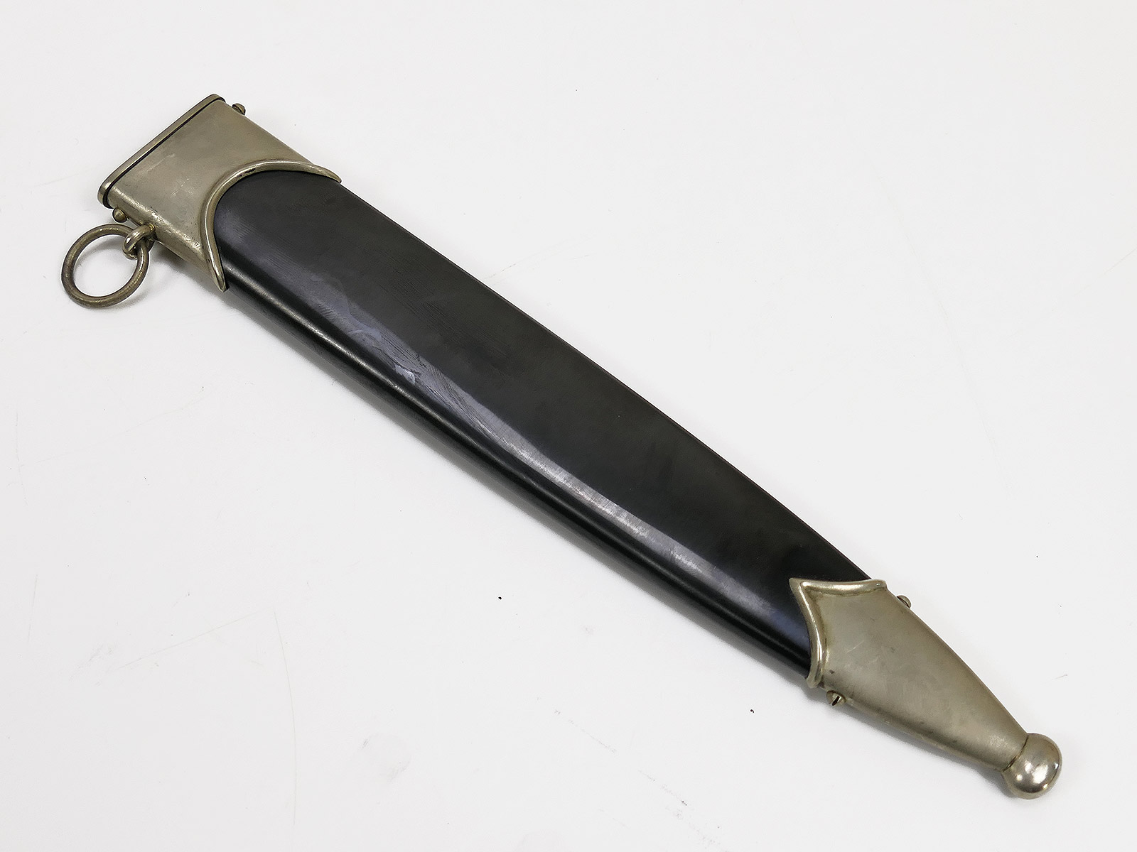 Komplett aus Metall, der Griff aus Holz. Scheidenbeschläge, Klinge.....alles magnetisch.