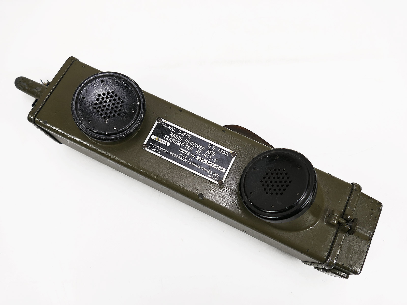 TOP US Signal Corps WW2 Funkgerät Handie Talkie Radio Receiver / Transmitter BC-611 F / Collection BATTLE WORN