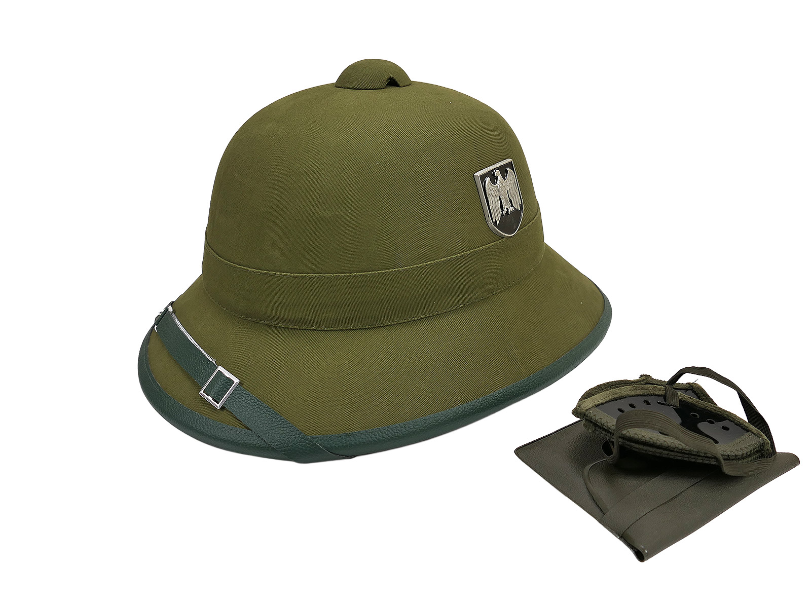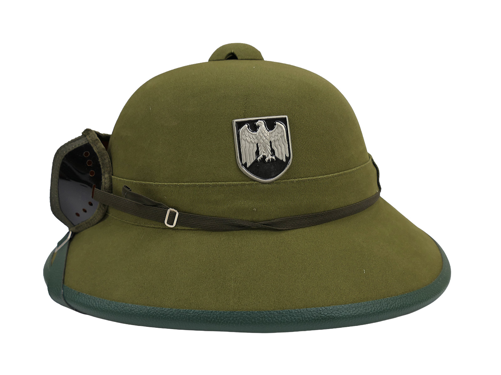 Tropenhelm Afrikakorps Wehrmacht (Repro) mit beiden Abzeichen, Adler ohne HK, entnazifiziert!