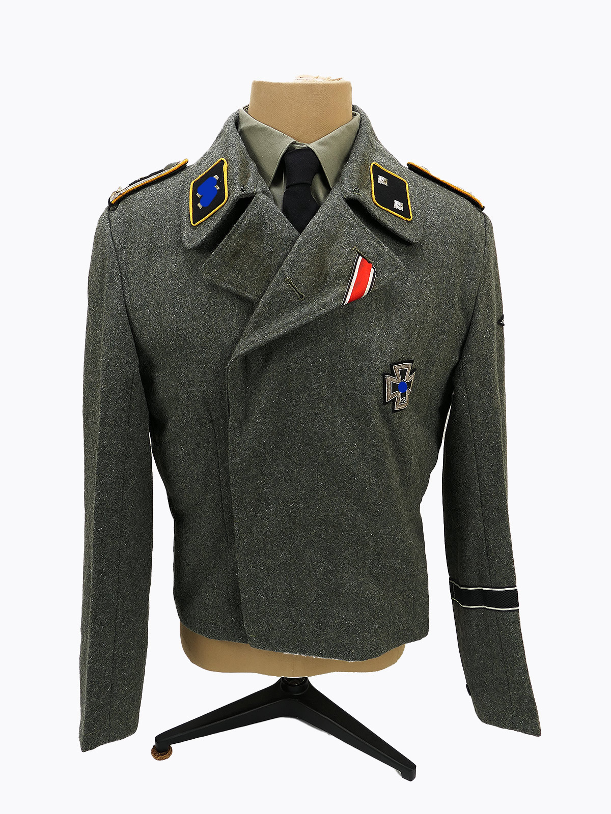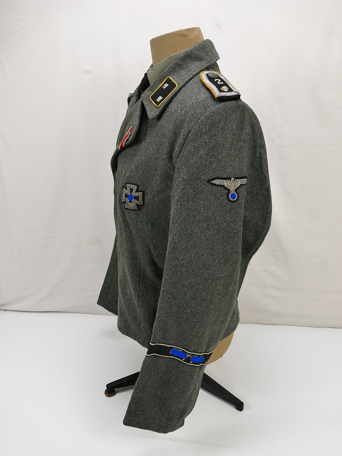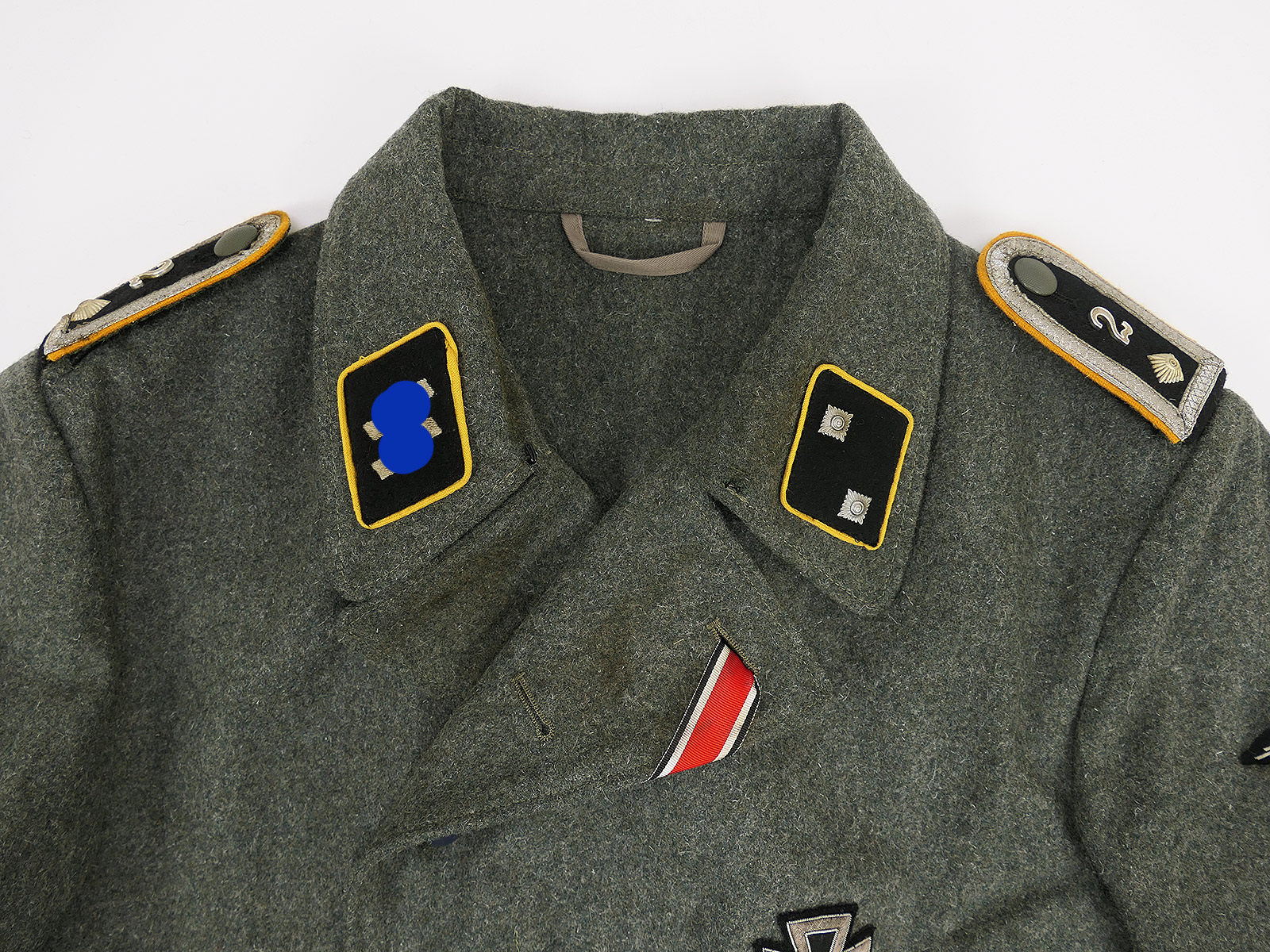 Mit Schulterklappen/Auflagen, Kragenspiegeln, EK2-Band, Stoff-EK1, Ärmeladler, Ärmelband.