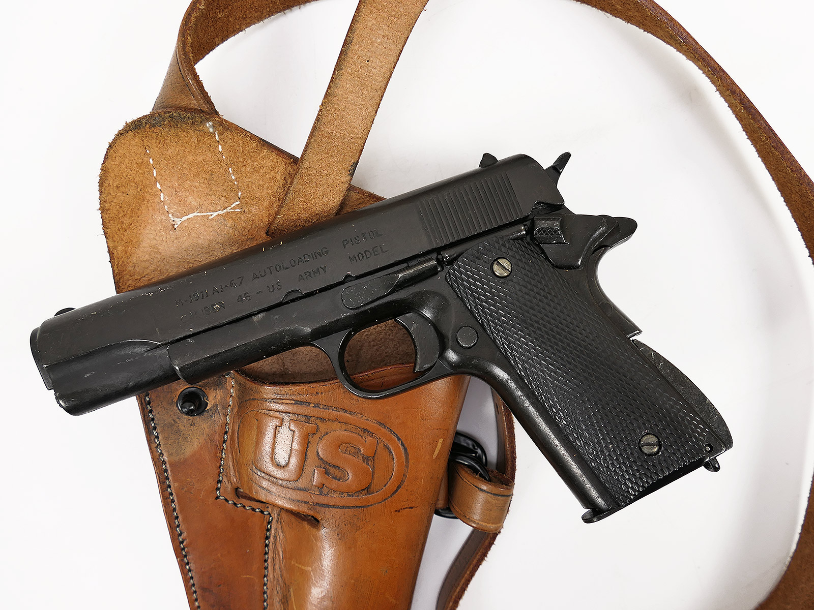 US Army Colt M1911 Denix Deko Waffe mit Leder Schulterholster COLLECTION