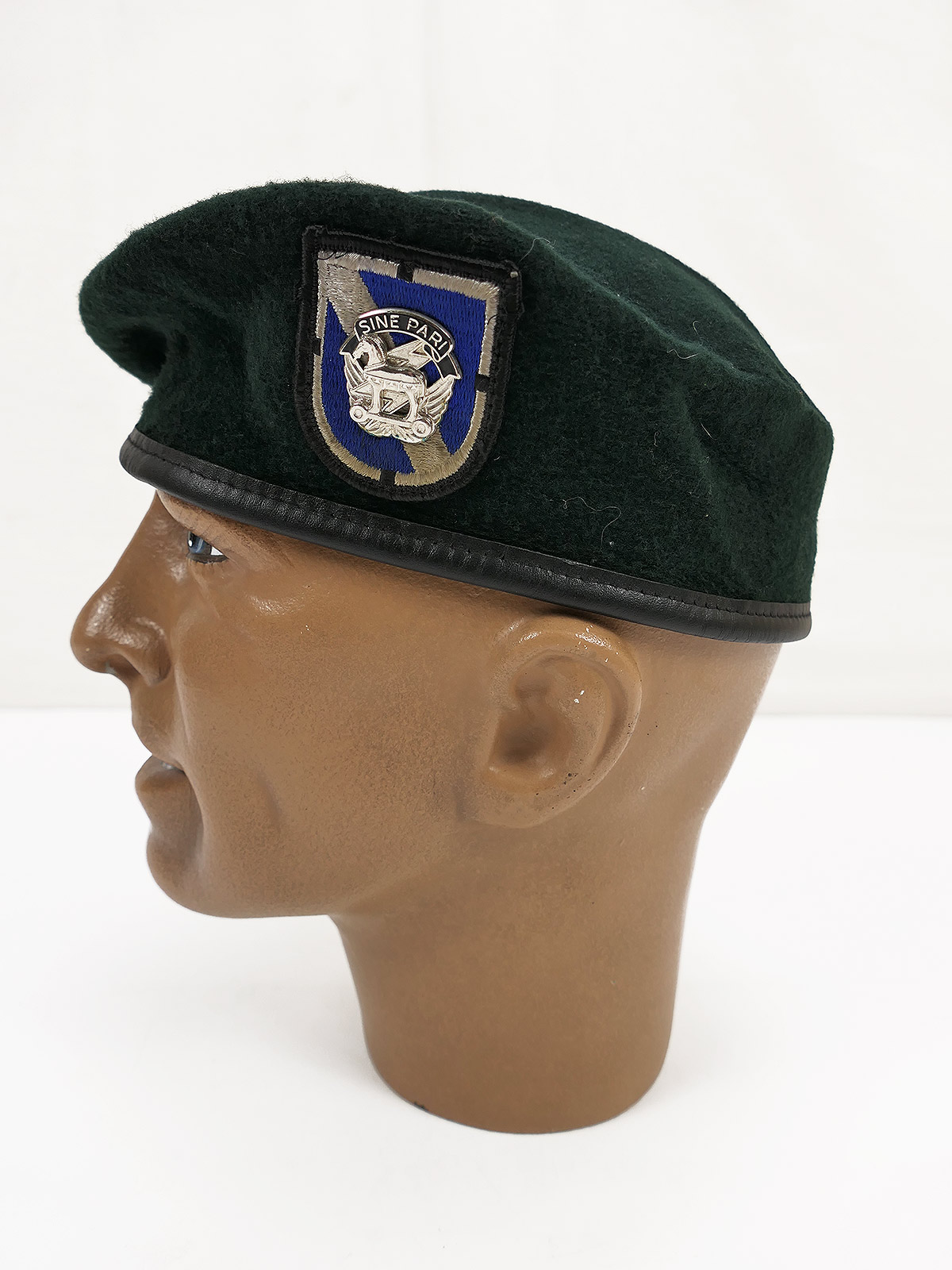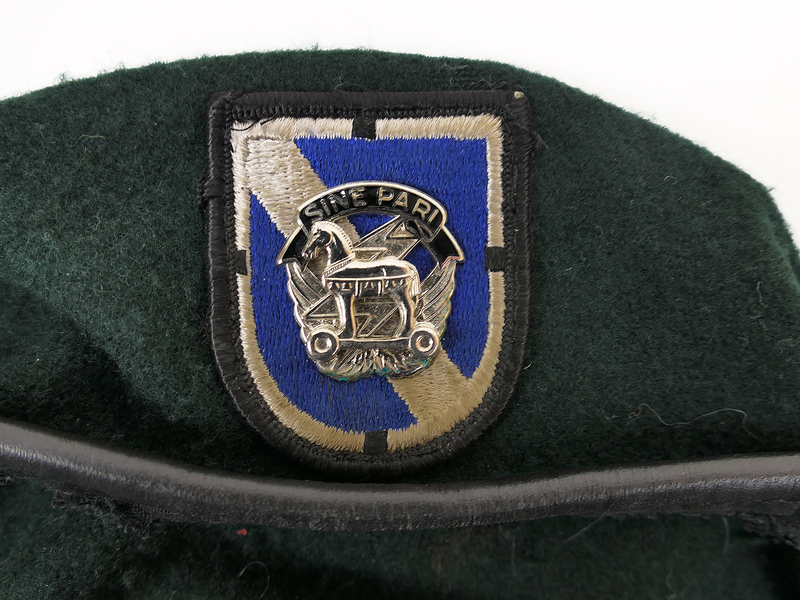 US Army Green Beret Special Operations Command SINE PARI Barett mit Metall Abzeichen
