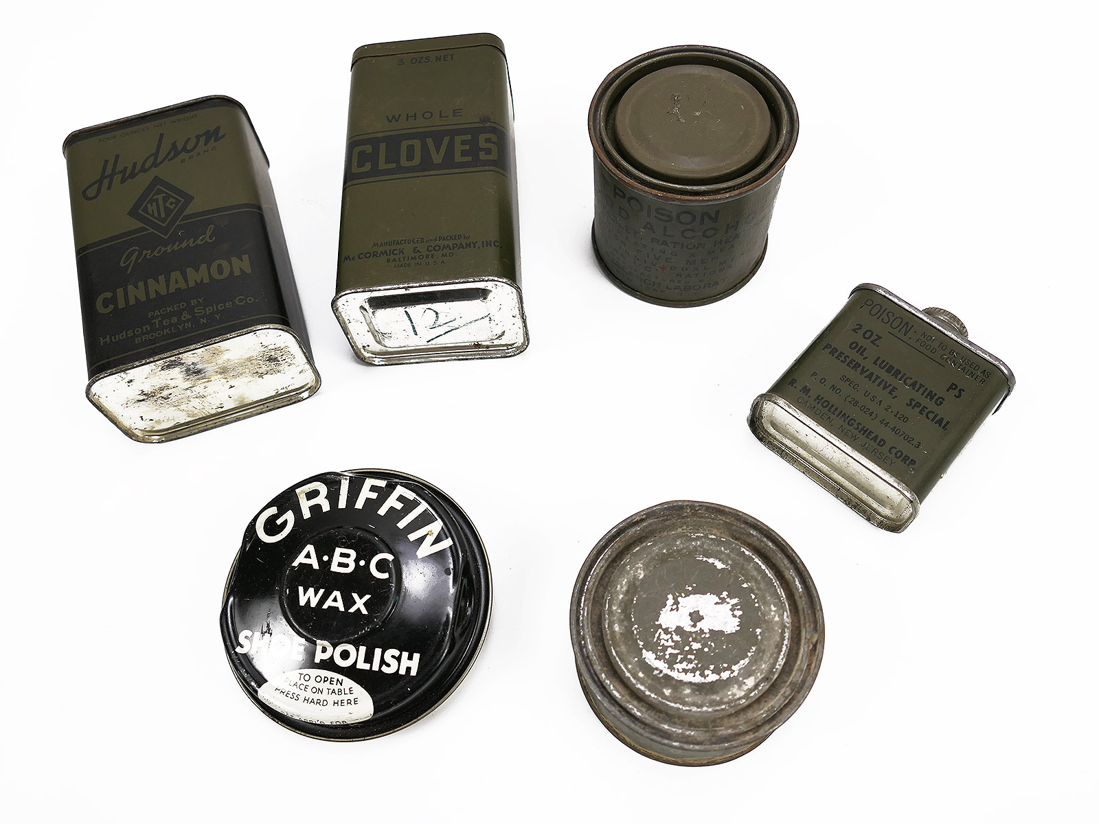 US Army Konvolut 6x Dosen Persönliches Shoe Polish Heater Cloves Lubricating Oil Cinnamon