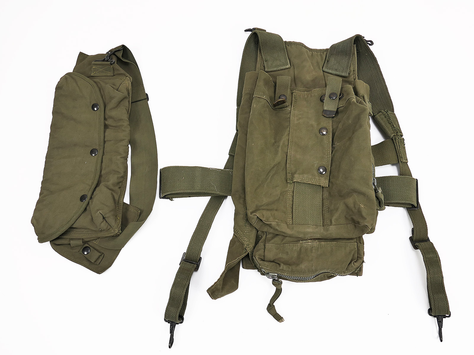 Repro US Haversack, wie abgebildet mit Kochgeschirrtasche (selbstgefertigt) und - als Taschenfüller eigentlich gedacht - einer Original US Wolldecke in schlechtem Zustand, mehrere Löcher, siehe Bilder.....