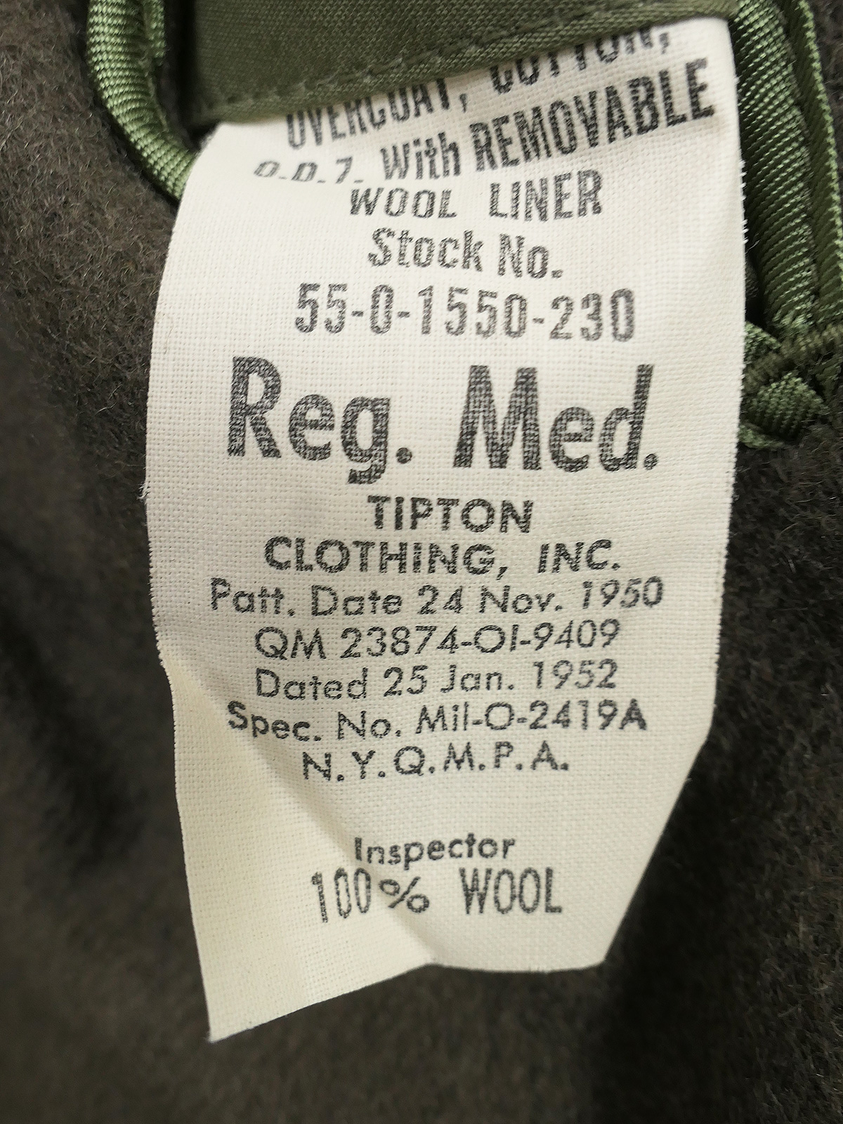 US ARMY Overcoat Cotton O.D.7 Mantel Mit Liner - Medium Regular 1950