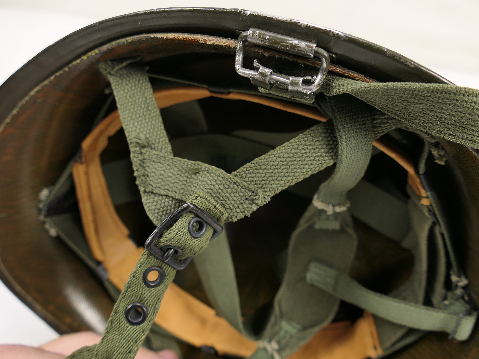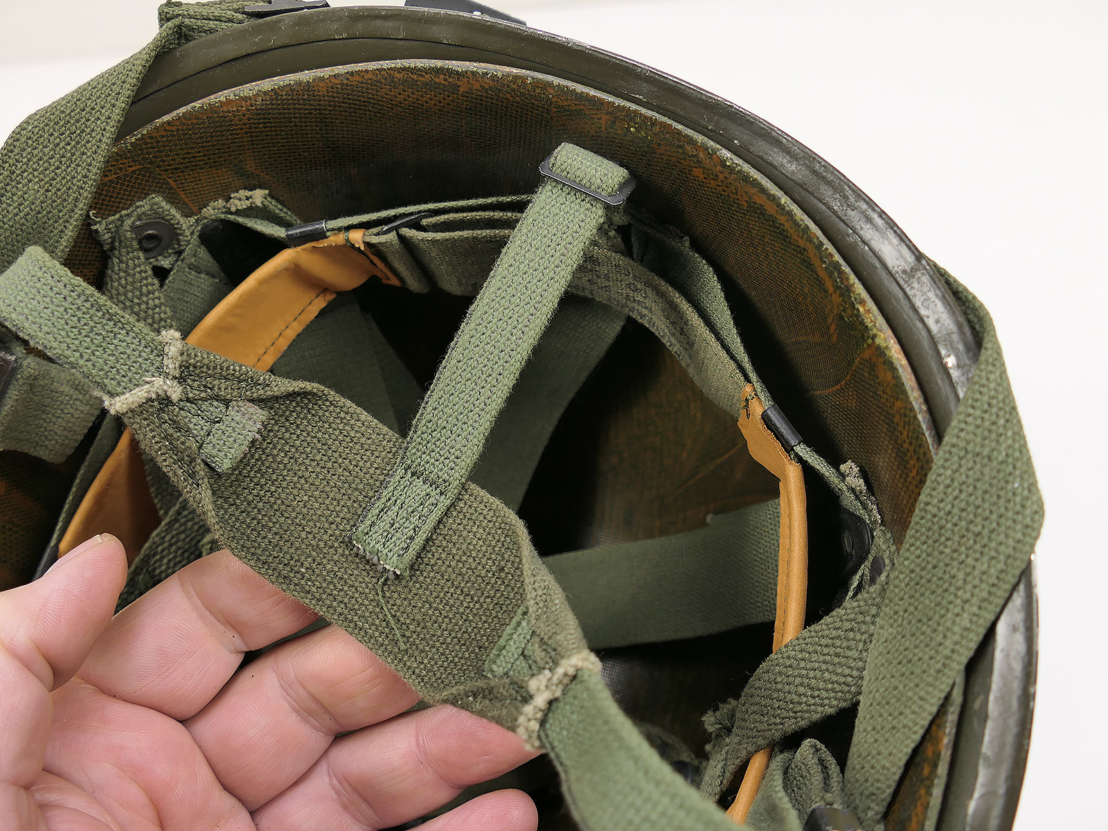 mit sehr schönem Fiber Liner (70er Jahre + Neckband), Kinnberiemungen....Vietnam Era.