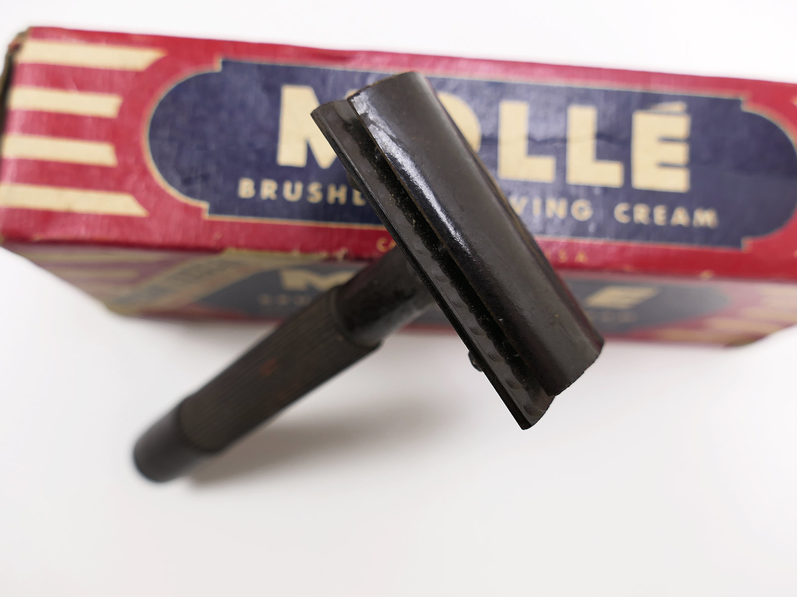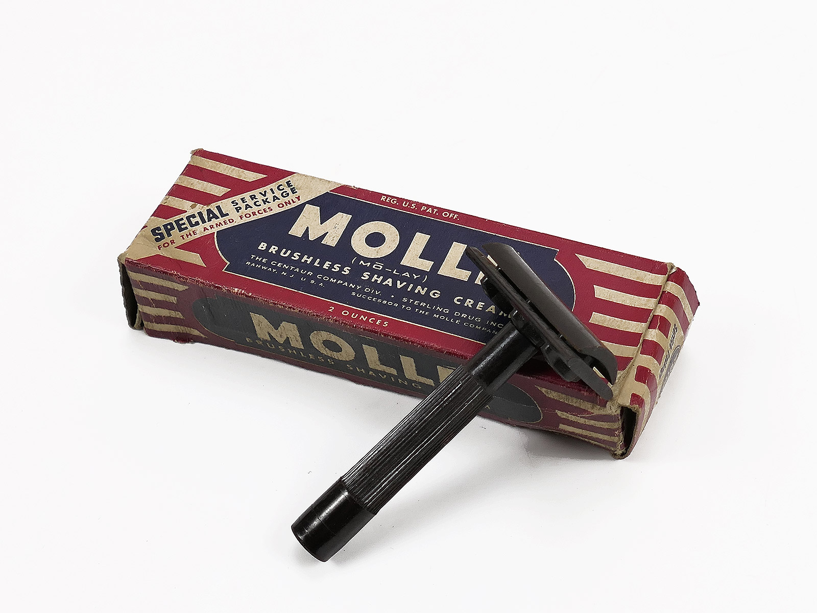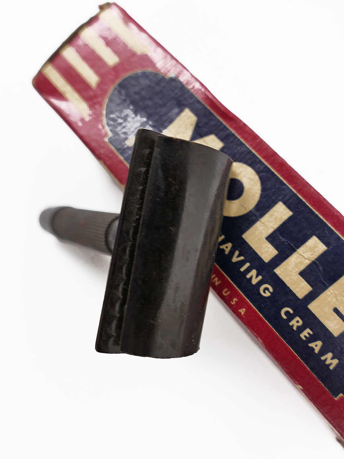 US Army WW2 GI Rasierer / Nassrasierer Shaver + leere Schachtel Rasierschaum Collection BATTLE WORN