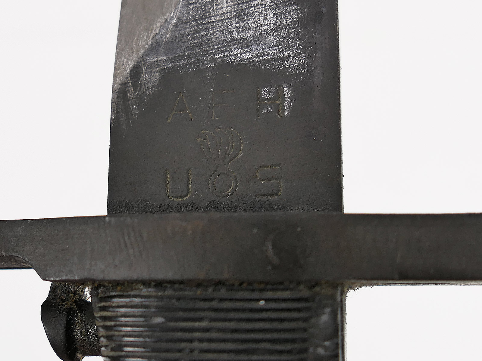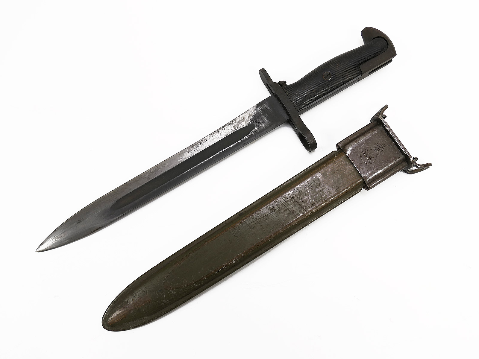US Army WW2 M1 Bajonett A.F.H. in Scheide für M1 Garand Seitengewehr / Collection BATTLE WORN