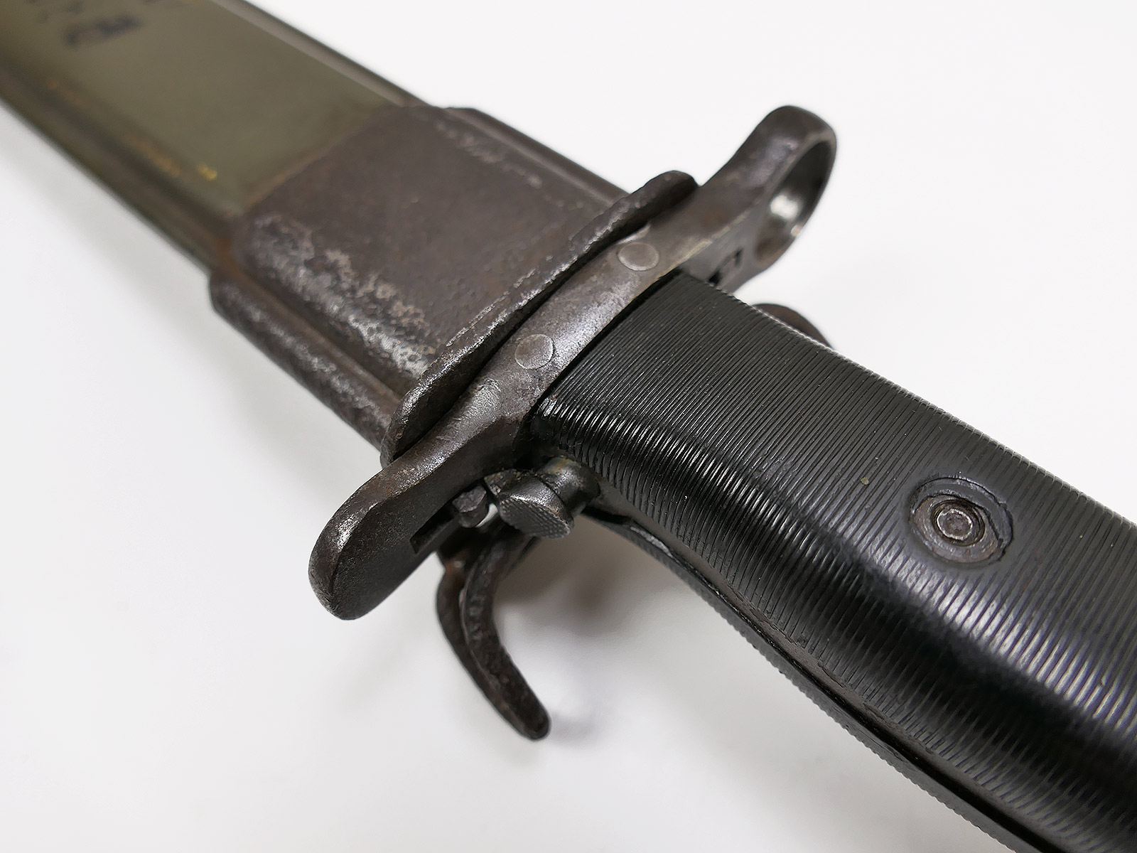 US Army WW2 M1 Bajonett in Scheide für M1 Garand Seitengewehr / Collection BATTLE WORN NORMANDIE