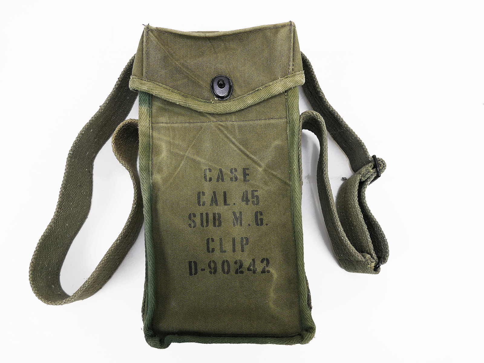 US Army WW2 Magazine Pouch case Cal .45 sub MG mit Trageriemen / Collection BATTLE WORN