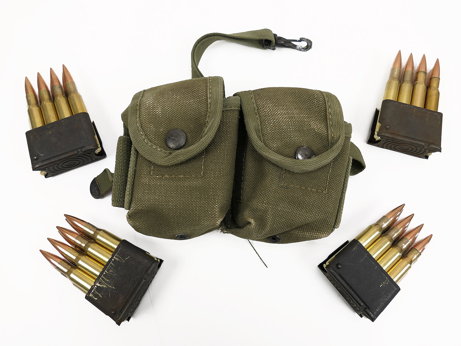 US Type Ammo En Bloc Alice Pouch mit 4x Garand M1 Clips / 32 Schuß .30-06 Munitionstasche Handgranatentasche