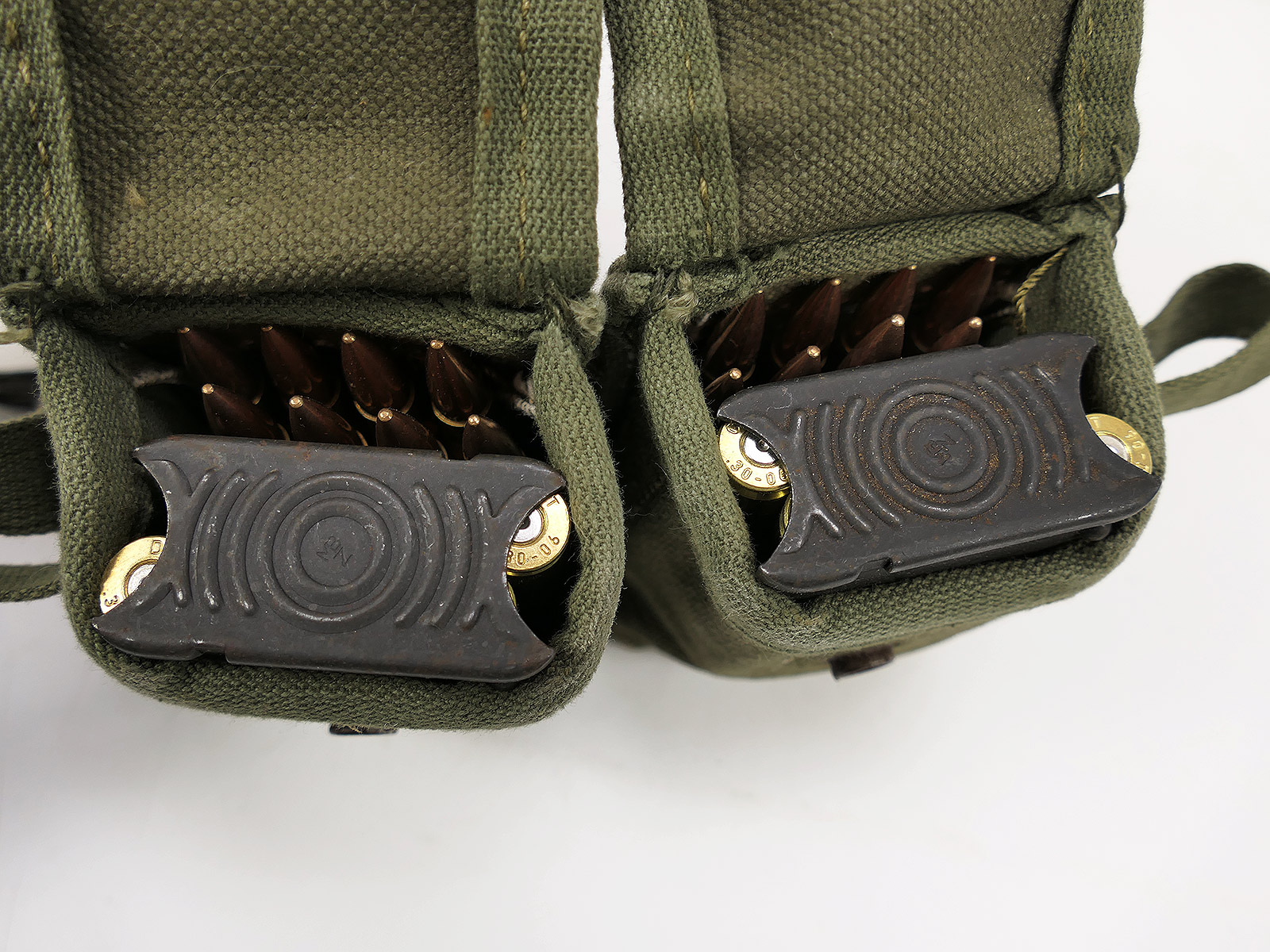 Eigenschaften "US Type Ammo En Bloc Alice Pouch mit 4x Garand M1 Clips / 32 Schuß .30-06 Munitionstasche Handgranatentasche"